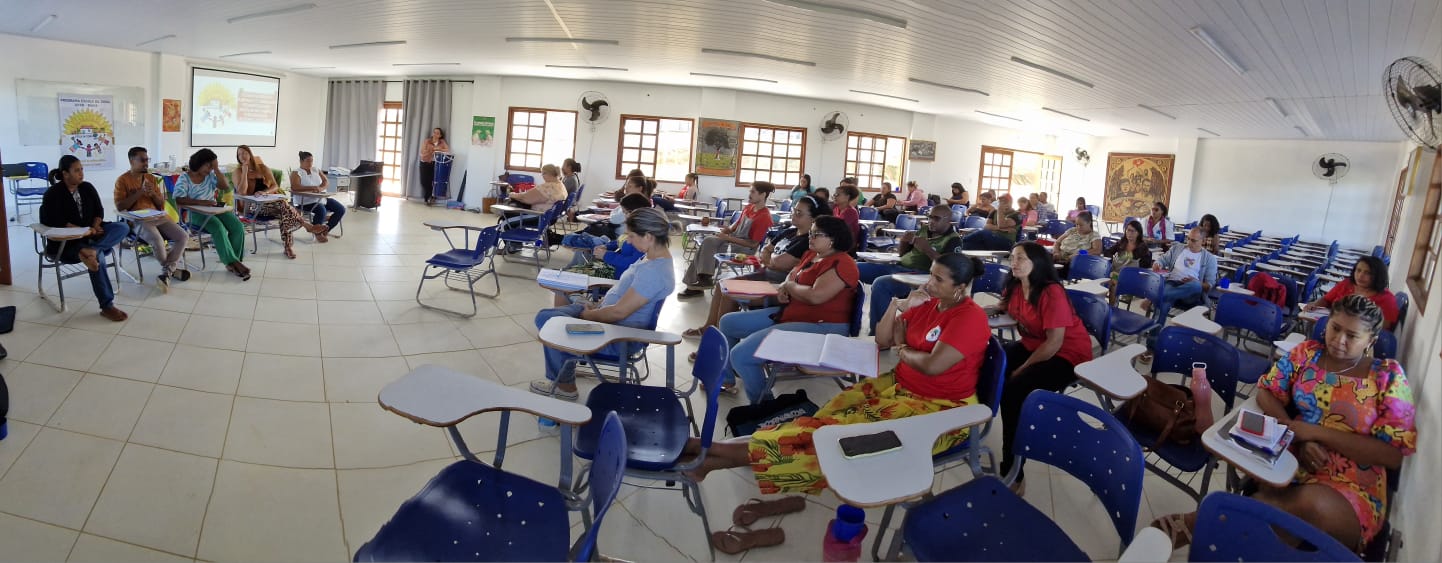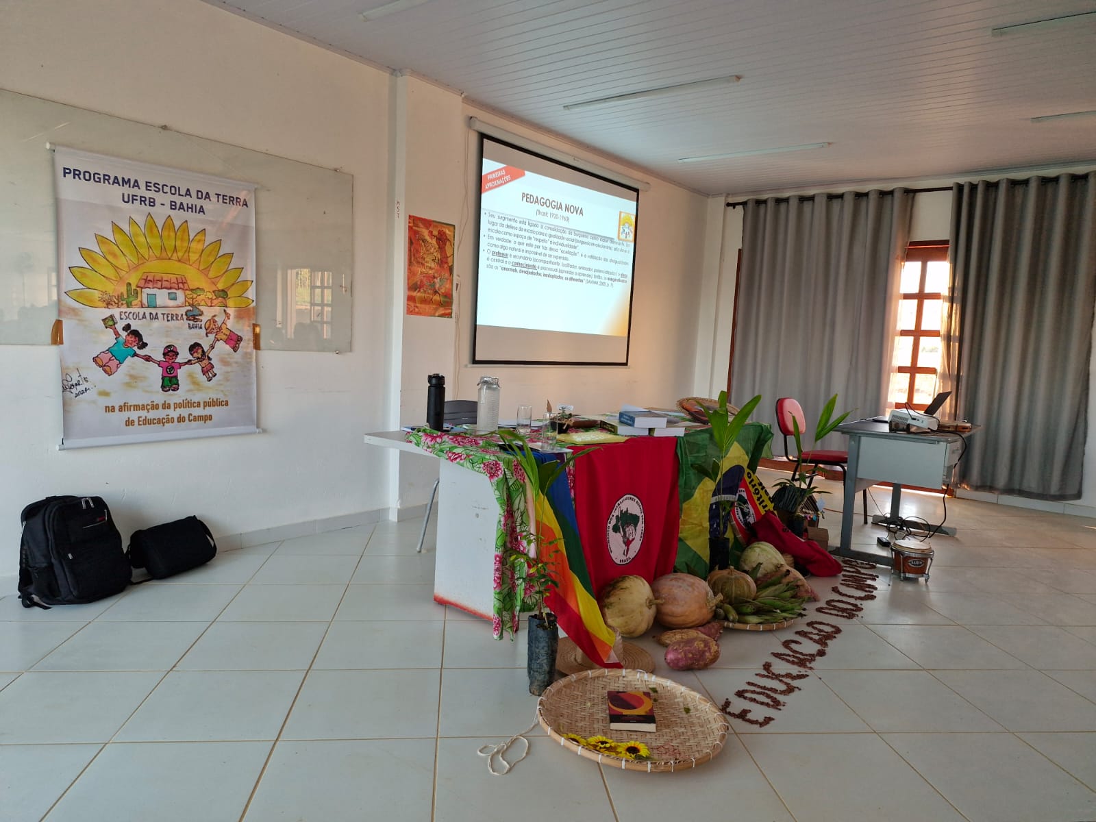 campo de Ensino Fundamental, anos iniciais, no estado da Bahia. Tem por foco a qualificação da práxis pedagógica de tais sujeitos, em nível Aperfeiçoamento, organizado em regime de alternância com carga horária total de 180 horas. A formação proposta tem sido realizada na articulação com a Secretaria da Educação do Estado da Bahia (SEC-BA), com algumas Secretarias Municipais de Educação e Movimentos Sociais. O módulo formativo com professores(as) de escolas das áreas de Reforma Agrária na Bahia foi realizado na Escola Popular de Agroecologia e Agrofloresta Egídio Brunetto (EPAAEB), localizada no Assentamento Jaci Rocha, em Prado – BA. E voltou-se para os debates sobre a Pedagogia do Movimento, a função social e o fazer das escolas do campo na Reforma Agrária Popular e o Desenvolvimento Humano e a Periodização Histórico-Cultural no contexto das escolas do campo. As atividades foram coordenadas pelo Prof. Dr. Alex Verdério - UFRB, pela Profa. Dra. Selidalva Gonçalves - UFRB e pela Profa. Msa. Dionara Soares Ribeiro - EPAEEB, que constituem a equipe de formadores do Programa Escola da Terra na UFRB.