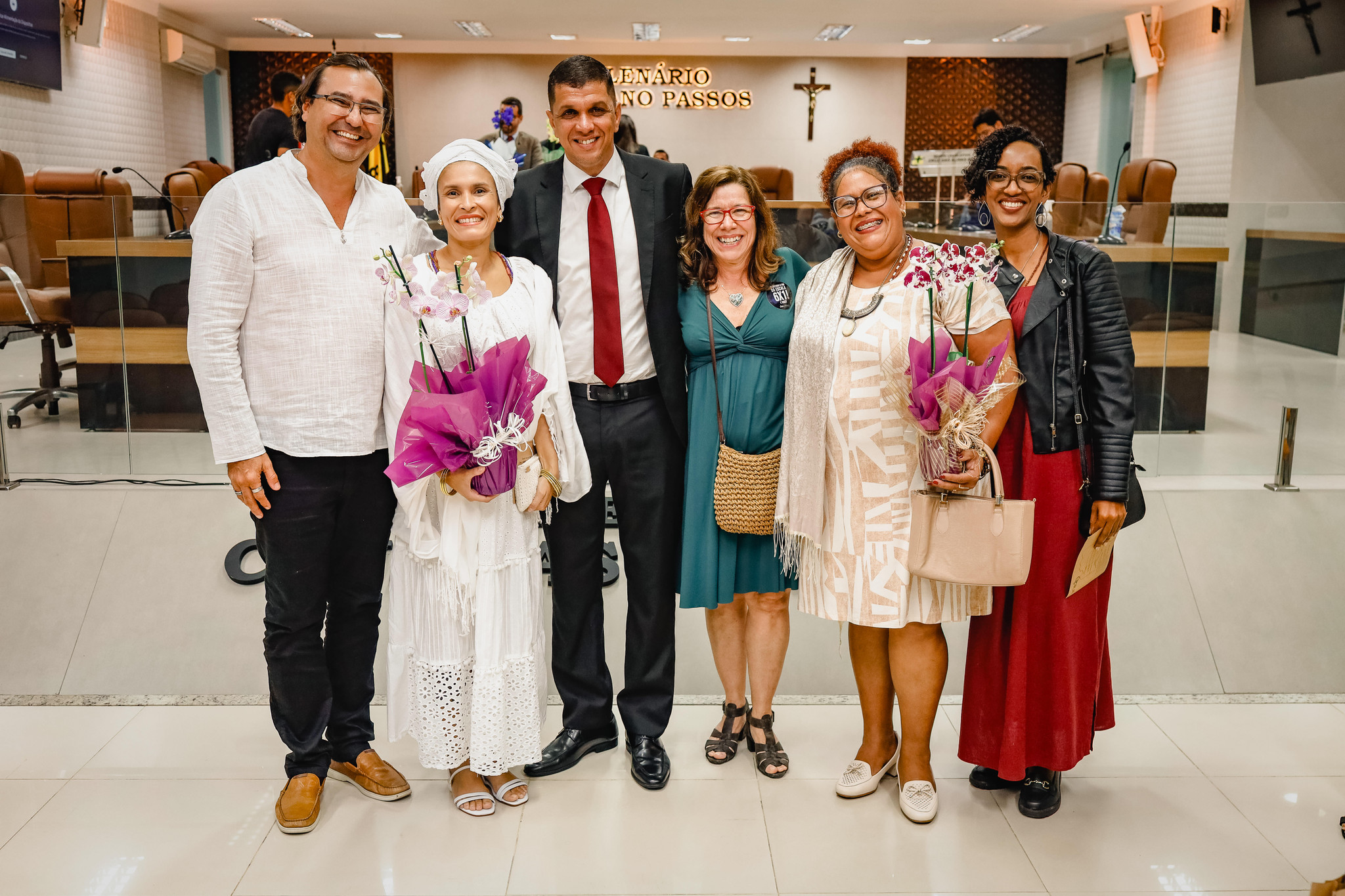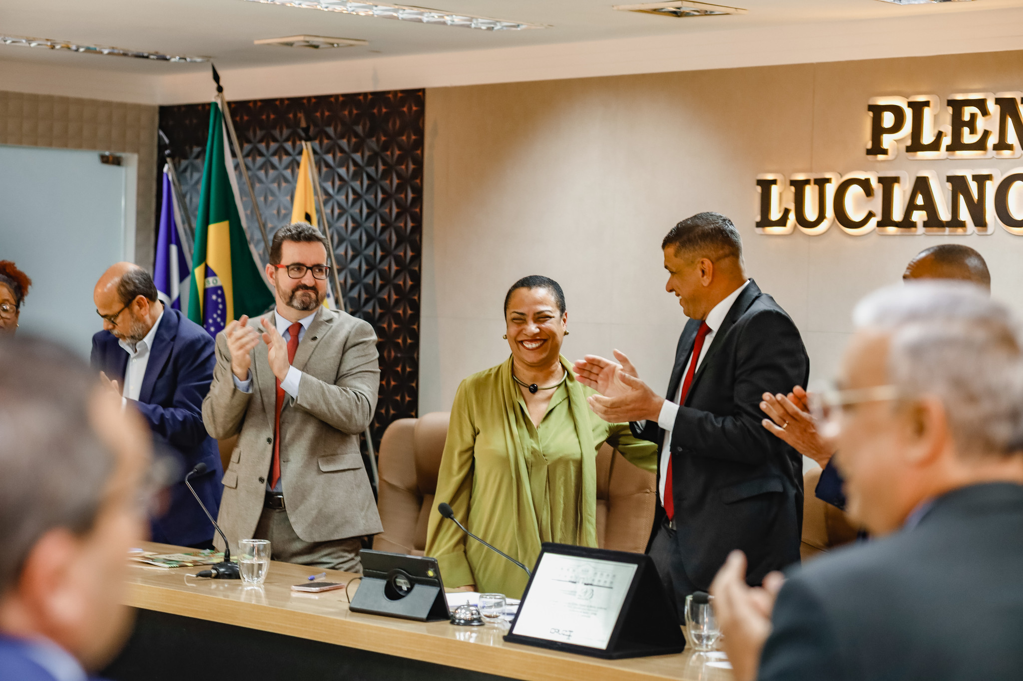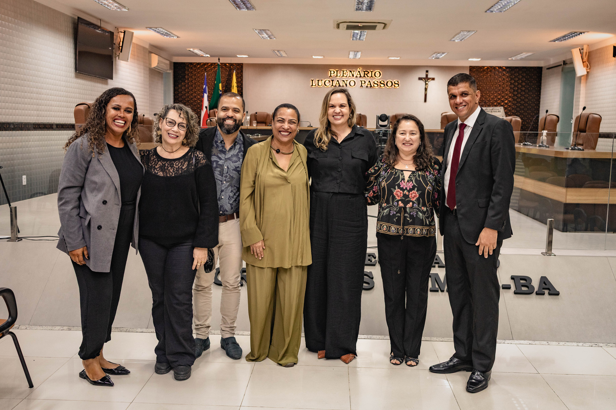Estiveram presentes na sessão solene os(as) vereadores(as) Aline Brandão, André Eloy, Angélica, Bimba da Gente, Cepacol, Gerson Rubronegro, Marcelo Vieira, Nego da Farmácia e Roberto Ximba.