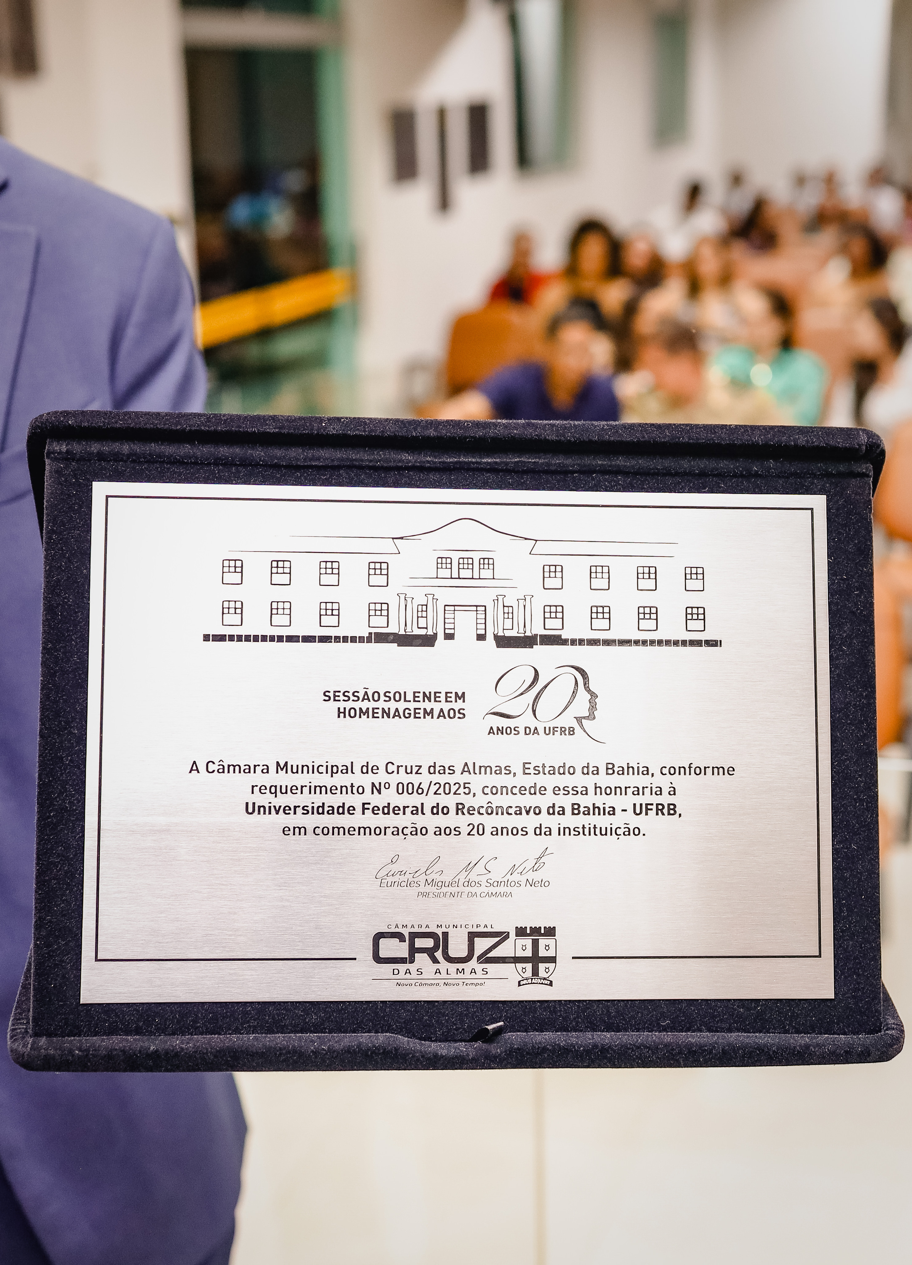 A Câmara Municipal de Cruz das Almas realizou na noite de 06 de agosto uma sessão solene memorável para celebrar os 20 anos de história da Universidade Federal do Recôncavo da Bahia (UFRB). O evento, marcado por momentos de alegria e emoção, reuniu autoridades, servidores(as), estudantes e representantes da sociedade civil para homenagear uma trajetória de conquistas e transformação regional.