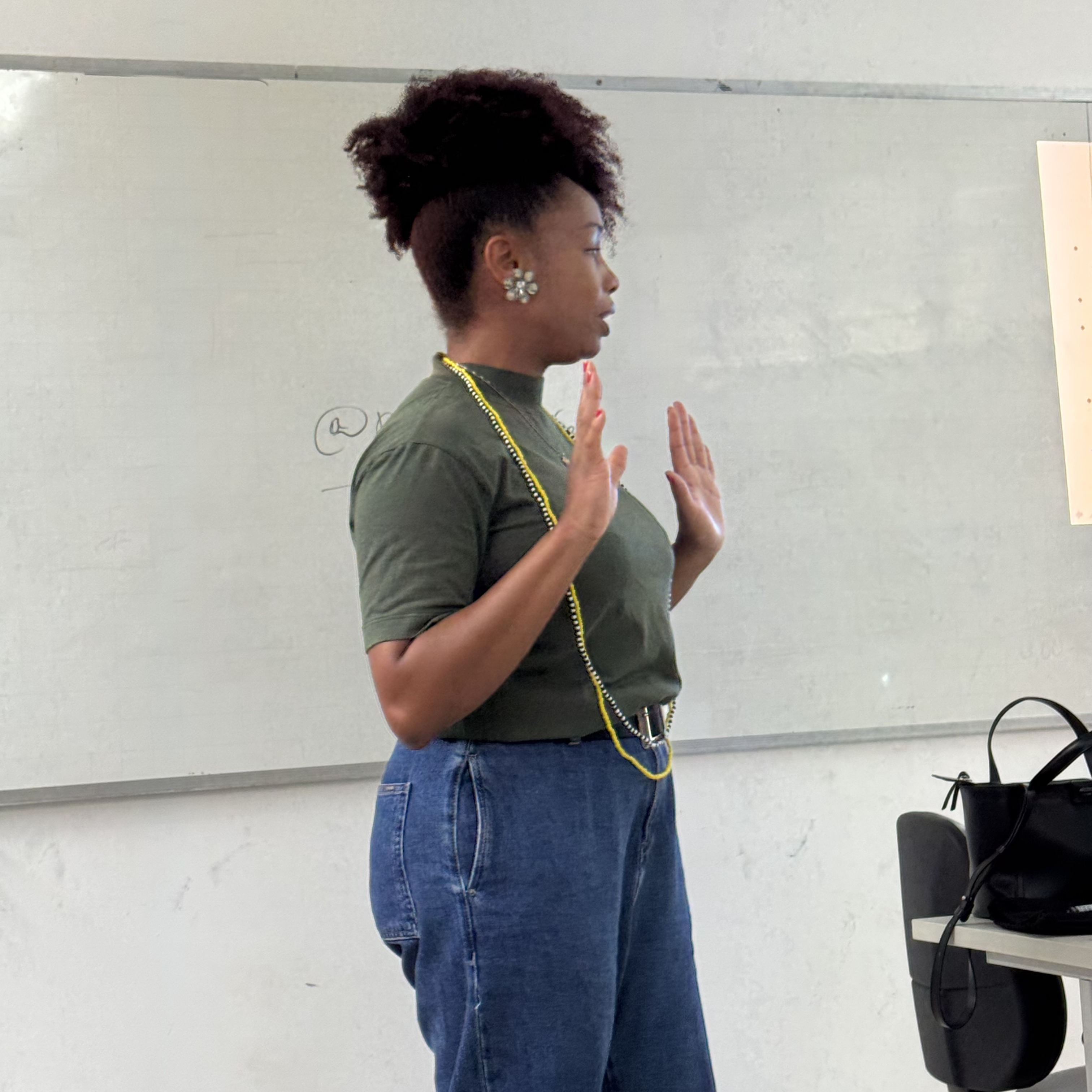 Nadiane nos contou e discutimos coletivamente sobre como essas intersecções influenciam em sua vida, e como isso também é um espelho do mundo social. Essa atividade foi realizada no âmbito das atividades do Procfemi com o apoio da PROPAAE e do Ministério das Mulheres.