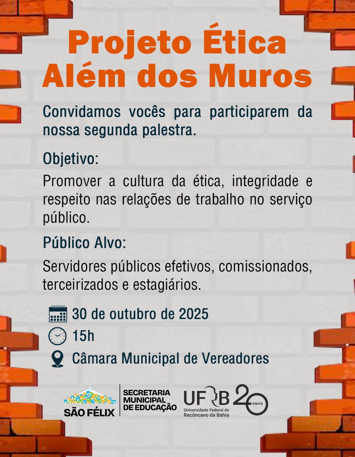 "ÉTICA ALÉM DOS MUROS" 2ª Palestra ciclo São Felix - BA A Comissão de Ética Pública Setorial da UFRB promove a partir do projeto "ÉTICA ALÉM DOS MUROS" sua segunda...
