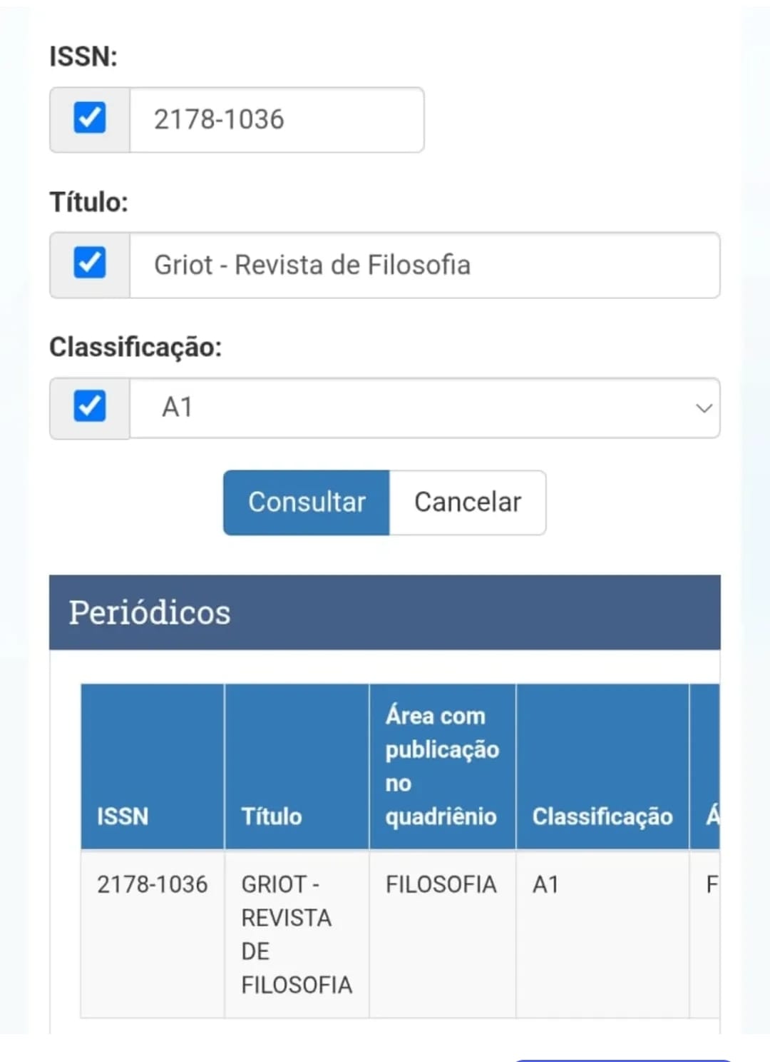 A Griot – Revista de Filosofia do Curso de Filosofia da UFRB recebeu a avaliação A1 em Filosofia