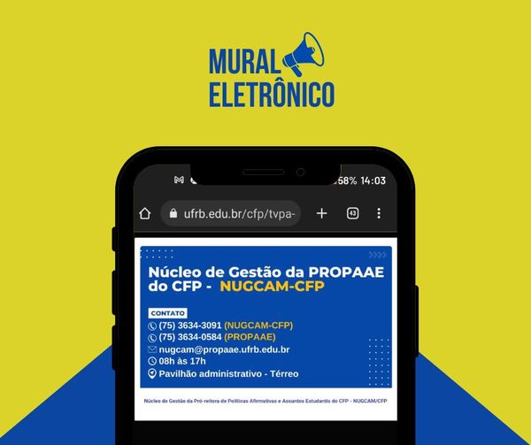 O Centro de Formação de Professores (CFP) possui agora um Mural Eletrônico para você se manter informado sobre as atividades do Centro. Acesse o...
