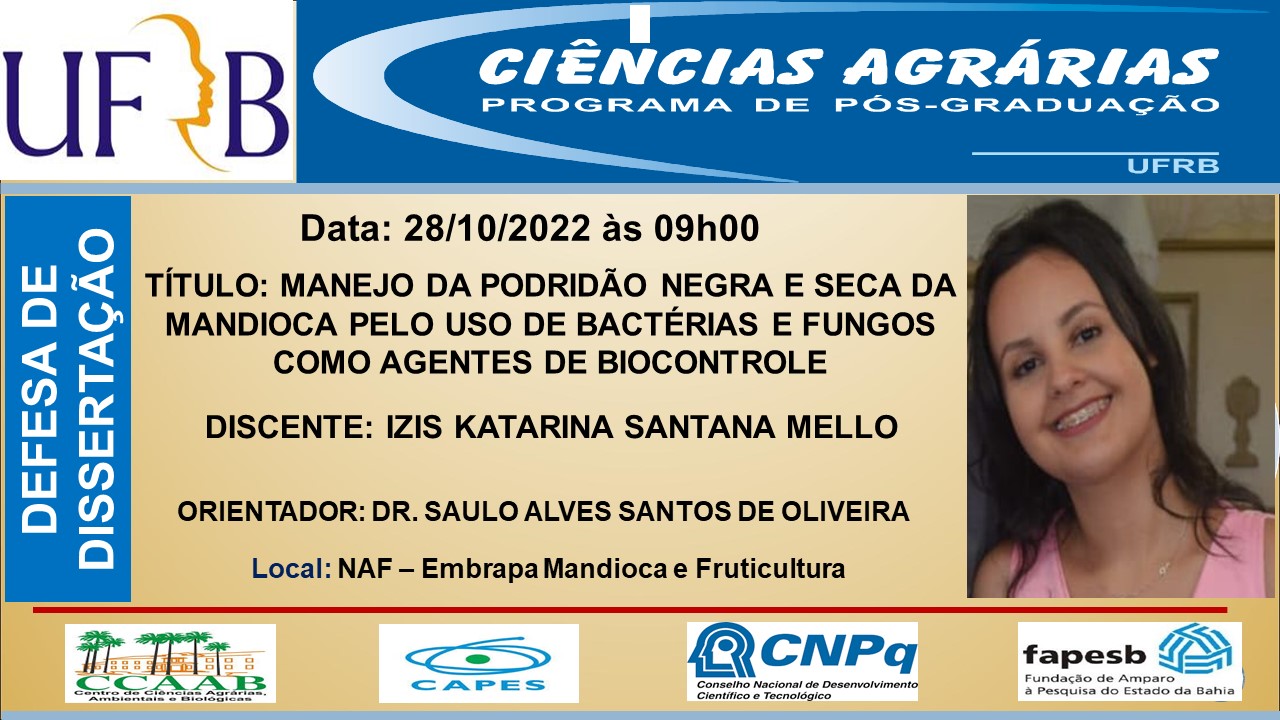 Convite da Defesa de Dissertação da discente Izis Katarina Santana Mello