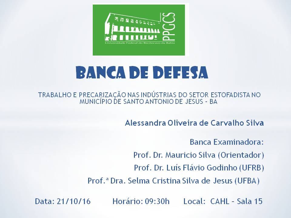 Banca de defesa de Alessandra Oliveira de Carvalho Silva