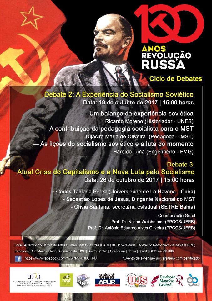 O Programa de Pós-graduação em Ciências Sociais (PPGCS) da Universidade Federal do Recôncavo da Bahia (UFRB), em conjunto com a Fundação Maurício Grabois e o Jornal Grande Bahia realizam com apoio da NEAF, GEPPS, APUR e UJS o ‘Ciclo de Debates: 100 anos da Revolução Russa’.