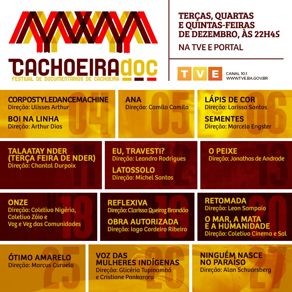 Filmes do Festival Cachoeira Doc, produzido na UFRB, são exibidos na TVE em dezembro