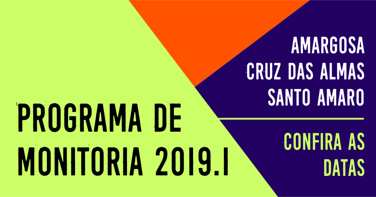 A Universidade Federal do Recôncavo da Bahia (UFRB) abre inscrição para estudantes no processo seletivo do Programa de Monitoria da Graduação, para o semestre 2019.1, nos Campi de Amargosa, Cruz das Almas ...