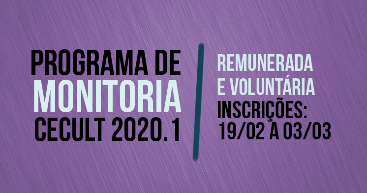 CECULT divulga inscrições para Programa de Monitoria Remunerada e Voluntária