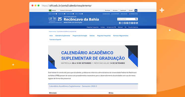UFRB desenvolve hotsite sobre o Calendário Acadêmico Suplementar