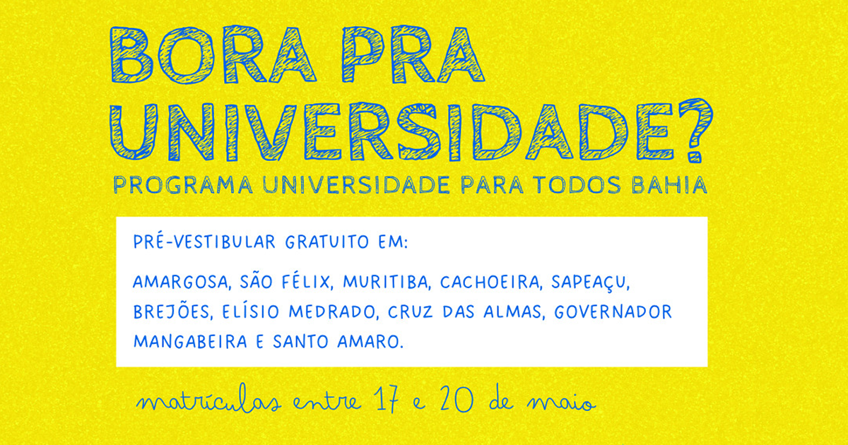 UFRB matricula para o Universidade para Todos 2022 até o dia 20 de maio