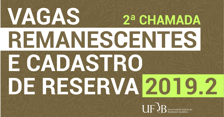 A Universidade Federal do Recôncavo da Bahia (UFRB), por meio de sua Pró-Reitoria de Graduação (PROGRAD), divulga a 2ª chamada do Processo Seletivo de Vagas Remanescentes do SISU- Lista de Espera e Cadastro ...