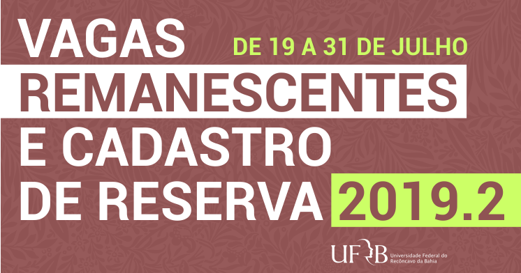 UFRB divulga resultado para vagas remanescentes e cadastro reserva 2019.2