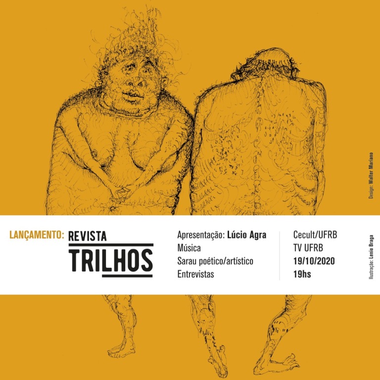 No dia 19 de outubro, no canal do Youtube da TV UFRB, às 19h, será realizado o lançamento da Revista Trilhos, um periódico acadêmico semestral em formato eletrônico editado pelo Centro de Cultura, Linguagens e Tecnologias Aplicadas (CECULT), da Universidade Federal do Recôncavo da Bahia (UFRB). O evento será apresentado pelo professor e performer Lucio Agra e contará com apresentações musicais, sarau poético/artístico, pequenas falas de alguns dos autores da primeira edição e uma breve entrevista com o prof. Marcelo Brazil sobre o artista Lenio Braga, cuja obra ilustra a edição de lançamento.