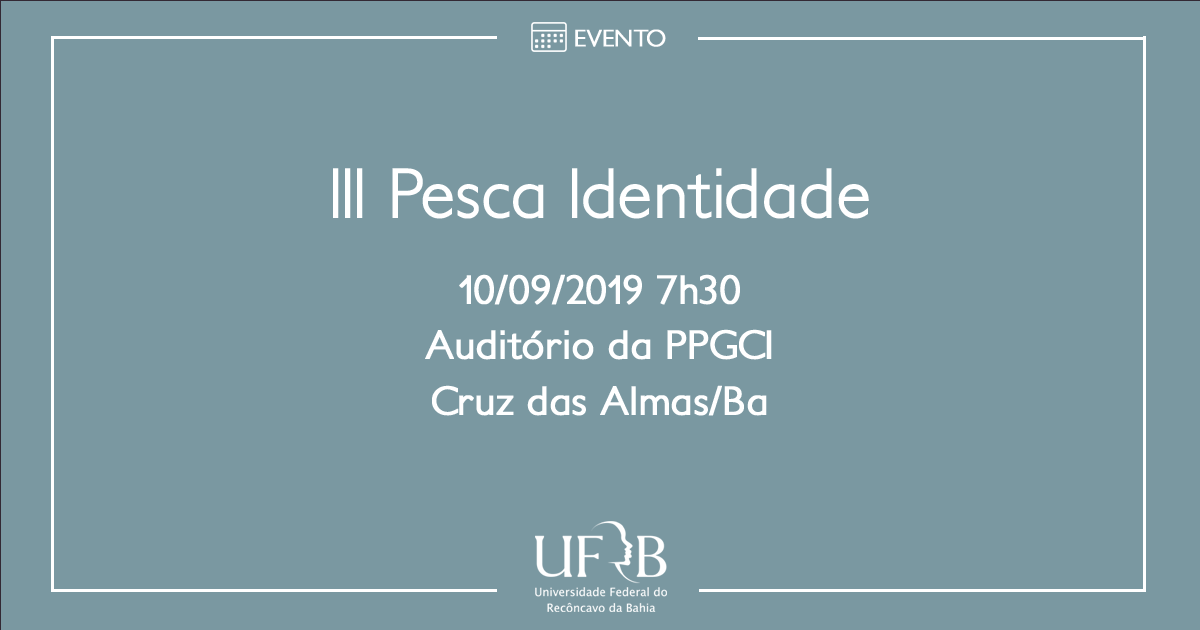 A Coordenação e o Diretório Acadêmico do Curso de Engenharia de Pesca promovem o “III Pesca Identidade”, no dia 10 de setembro, das 7h30 às 17h, no Auditório da PPGCI, campus de Cruz das Almas. O objetivo do evento é promover a reflexão, o diálogo e a convivência fraterna entre docentes, técnicos e discentes, para fortalecer assim os elementos identitários do curso. Será ainda discutido o papel da comunidade na construção de um curso mais comprometido com a formação de profissionais qualificados para o mercado atual de trabalho e o empreendedorismo.