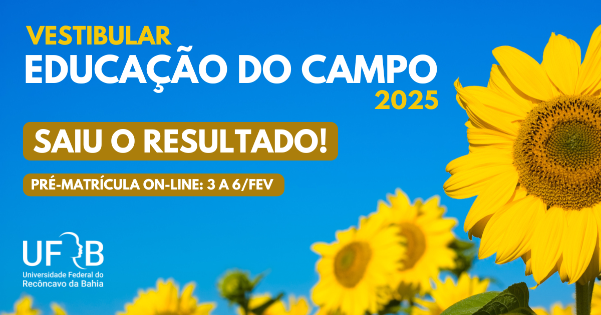 UFRB divulga resultado do Vestibular para Educação do Campo 2025; pré-matrícula de 3 a 6/2