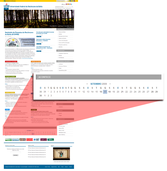 Estamos lançando uma nova funcionalidade no Portal, é o "Acontece" onde todas os eventos serão adicionados para facilitar a localização. Para saber o que está acontecendo hoje pela universidade basta clicar no dia correspondente. Logo abaixo uma imagem para localizar o "Acontece" no Portal:
