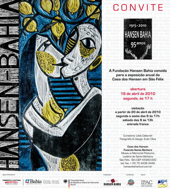 A Fundação Hansen Bahia realiza uma exposição comemorativa aos 95 anos do gravador Karl Hans Hansen – Hansen Bahia. São 78 obras restauradas com o patrocínio do Consulado Geral da República Federal da Alemanha no Recife, que ficarão expostas no período de abril de 2010 a março de 2011, na Casa Museu e Memorial dos Hansen, localizada na Fazenda Santa Bárbara em São Félix – Ba. A abertura da exposição acontece no dia 19 de abril, às 17hs, data de aniversário do artista.