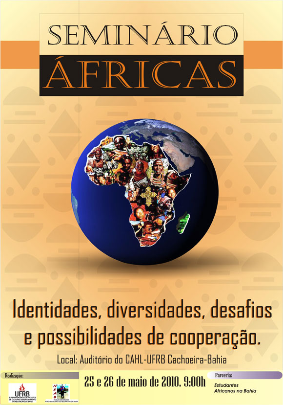 O I Seminário Áfricas: Identidades, Diversidade, Desafios e Possibilidades de Cooperação será realizado nos dias 25 e 26 de maio no Auditório do CAHL/UFRB em Cachoeira. O evento celebra o dia da África, 25 de Maio, data em que foi fundada, em 1963, a Organização da Unidade Africana (OUA), hoje, Unidade Africana (UA).
