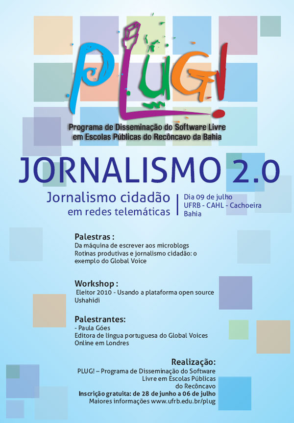 Inscrição gratuita: de 28 de junho a 06 de julho on line no site do Plug!. Ou no local do evento.