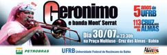 No dia 30/07 aconteceu o Show comemorativo '5 anos de UFRB e 113 anos de Cruz das Almas', uma parceria entre a Prefeitura Municipal de Cruz das Almas, Federal do Recôncavo, com apoio da Petrabrás, na Praça Multiuso em Cruz das Almas, com Aula cantada de Gerônimo e Banda Mont’Serrat.