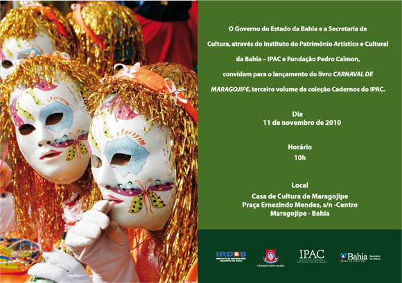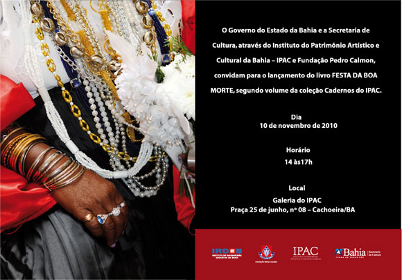 O livro e DVD integram parceria entre FPC e IPAC, ambos órgãos da SecultBA que estão realizando série de publicações de parte das pesquisas e dossiês que possibilitam os registro oficiais de manifestações culturais como Patrimônios Imateriais da Bahia. “De 2007 a 2010 já foram reconhecidas como Patrimônios Imateriais da Bahia, a Festa da Boa Morte em Cachoeira, o Carnaval de Maragojipe nesta cidade e a Festa de Santa Bárbara em Salvador”, diz o diretor geral do IPAC, Frederico Mendonça. A previsão é que até dezembro (2010), o IPAC termine a pesquisa sobre Desfile dos Afoxés, e em 2011, estudos sobre Ofício dos Vaqueiros, Ofício dos Mestres Organistas e Festa do Bembé em Santo Amaro.