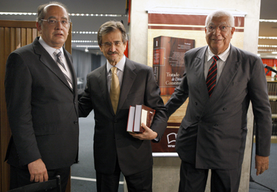 Foram lançados na noite desta quarta-feira (17), na Biblioteca Victor Nunes Leal, do Supremo Tribunal Federal (STF), os dois volumes do “Tratado de Direito Constitucional”, da Editora Saraiva, na qual especialistas de renome nacional e internacional abordam diversas dimensões do Direito Constitucional. A publicação tem como coordenadores o ministro Gilmar Mendes, do Supremo Tribunal Federal, e os advogados e professores Ives Gandra da Silva Martins e Carlos Valder do Nascimento.