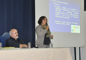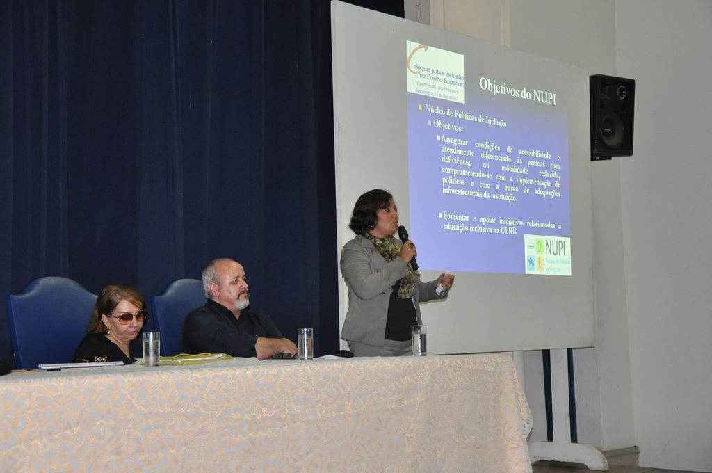 A pró-reitora apresentou as ações que estão sendo desenvolvidas pela UFRB para acessibilidade das pessoas com deficiência física ou com necessidades educacionais especiais. Entre elas, destacou o mapeamento das condições arquitetônicas dos prédios da Universidade e a aquisição de aparelhos e softwares especiais para garantir a este público o desenvolvimento das atividades acadêmicas. De acordo com um levantamento realizado pelo NUPI, 10 estudantes com deficiência física estão matriculados na instituição. “Muitas vezes, esse estudante não sinaliza sua deficiência porque tem receio de ser excluído”, disse Susana.