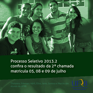 O resultado da segunda chamada do Sistema de Seleção Unificada (Sisu) do Ministério da Educação foi divulgado nesta segunda-feira, 01 de julho. Os candidatos selecionados para as vagas ofertadas pela Universidade Federal do Recôncavo da Bahia (UFRB) terão os dias 05, 08 e 09 de julho para matrícula (apresentação e entrega de documentos).