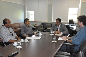 O prefeito estava acompanhado do Secretário Municipal de Desenvolvimento Agrícola, Econômico e Meio Ambiente, José Ailton Rodrigues, e do coordenador de Agriculta e Pecuária do município, o engenheiro agrônomo Edson Gomes. Durante a reunião, eles conheceram o projeto da UFRB e reforçaram o convite para a instituição apoiar a elaboração do Plano Municipal de Desenvolvimento Sustentável a partir do CMDS.