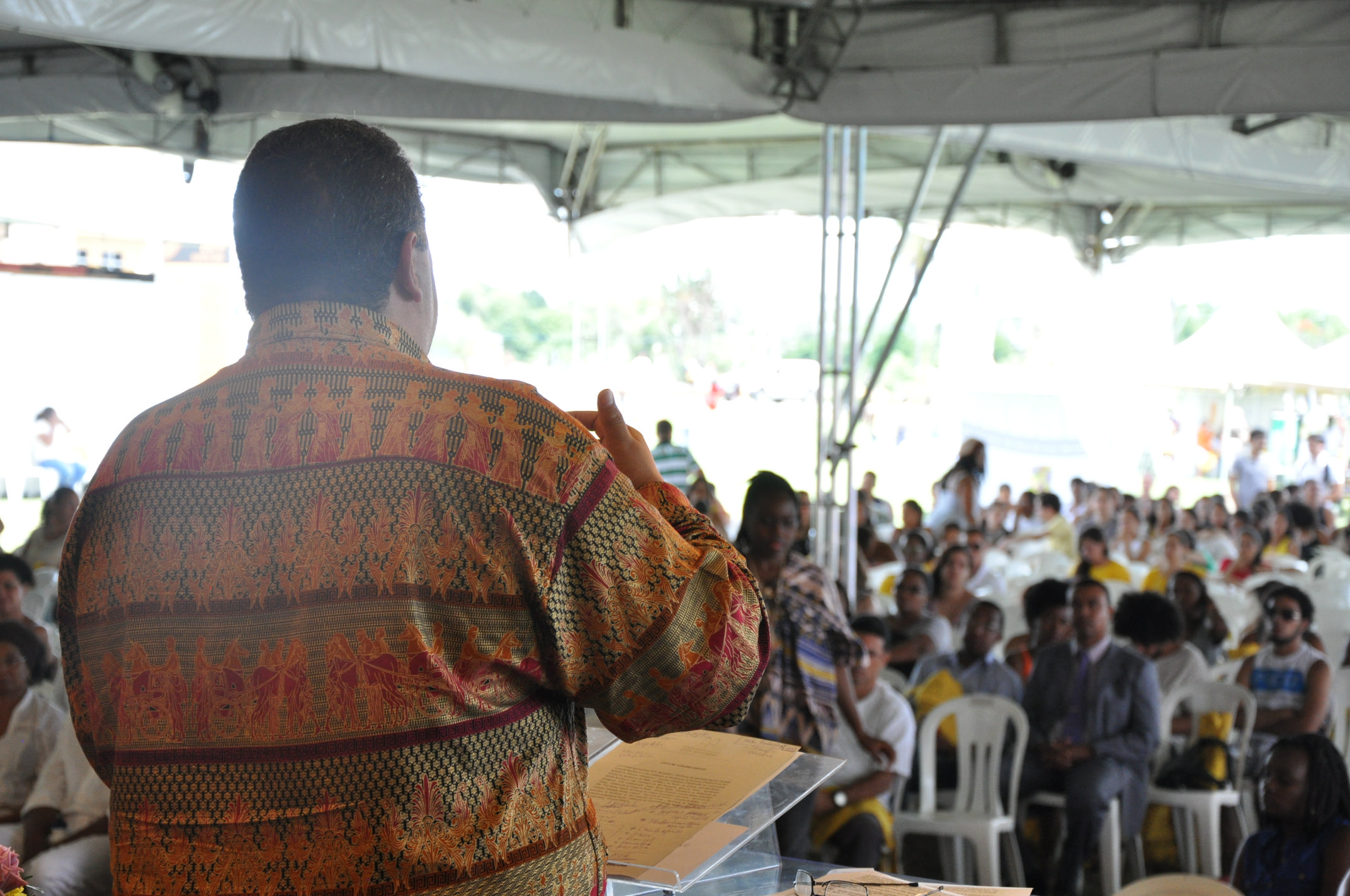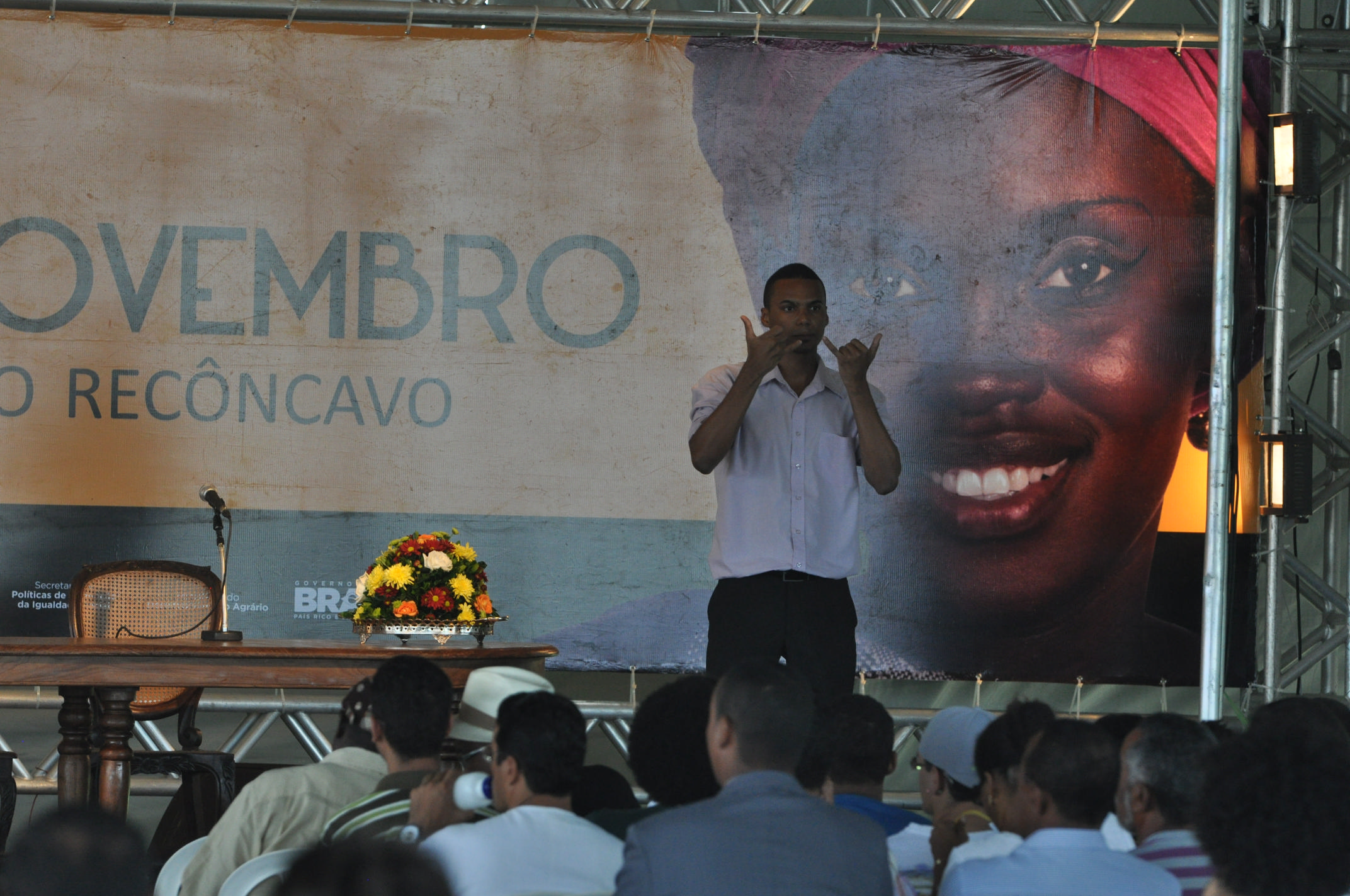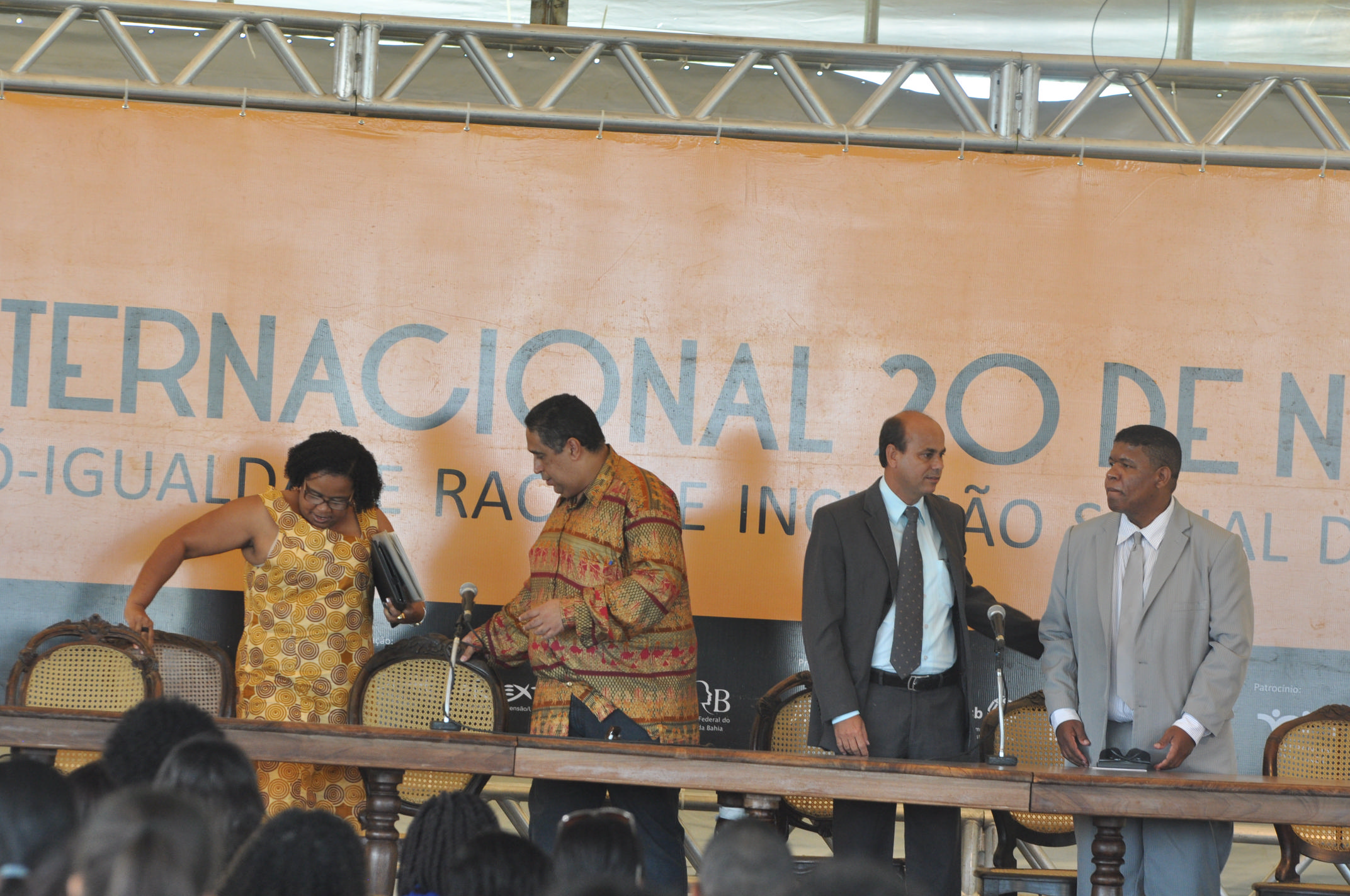 O evento, que reúne cerca de 2500 pessoas, discute temas como relações raciais, sexualidade, gênero, políticas e práticas afirmativas. A abertura aconteceu no auditório Zumbi dos Palmares e contou com as presenças do reitor da UFRB, Paulo Gabriel Nacif, do vice-reitor Silvio Soglia, dos pró-reitores de Políticas Afirmativas e Assuntos Estudantis (PROPAAE), Ronaldo Barros, e de Extensão (PROEXT), Rita Santiago; da representante da Pró-Reitoria de Pós Graduação (PRPPG), professora Franceli da Silva e do diretor do Centro de Ciências Agrárias, Ambientais e Biológicas (CCAAB), Elvis Lima. Representando os estudantes, Mateus Barbosa; os técnicos-administrativos, Eliélson Aquino, e o continente africano, Camilo Afonso, diretor da Casa de Angola.