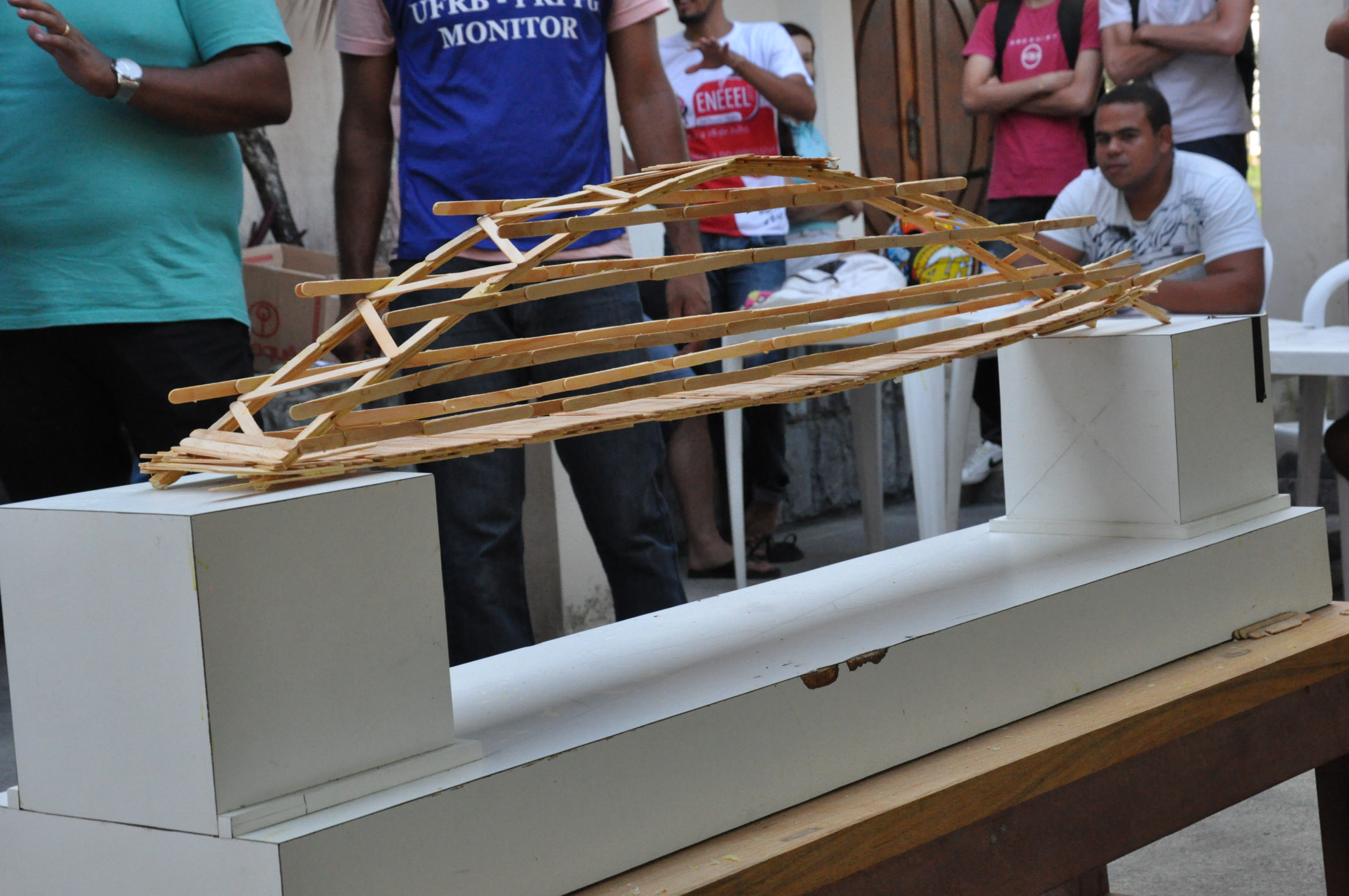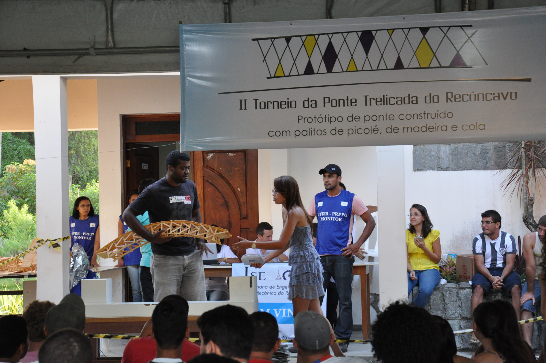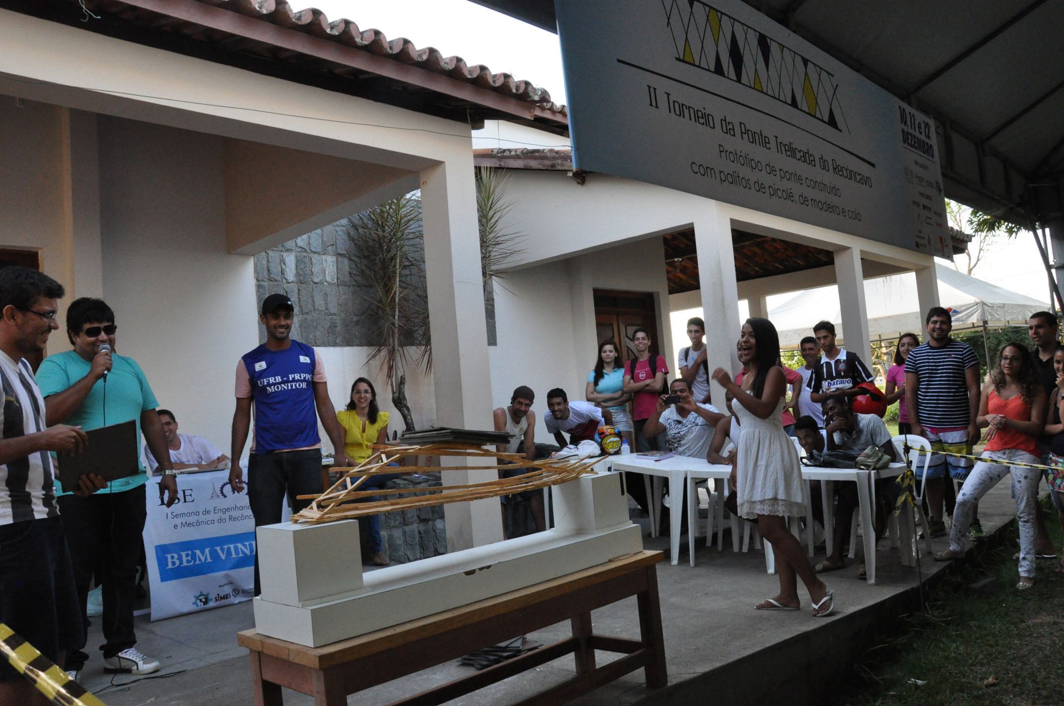 O II Torneio da Ponte Treliçada do Recôncavo foi realizado no campus de Cruz das Almas da Universidade Federal do Recôncavo da Bahia (UFRB), nos dias 10 e 11 de dezembro. Uma iniciativa do Centro de Ciências Exatas e Tecnológicas (CETEC), o evento avalia o protótipo de uma ponte construída com palitos de picolé de madeira e cola. O modelo deve resistir a uma carga crescente para análise do desempenho de sua estrutura.