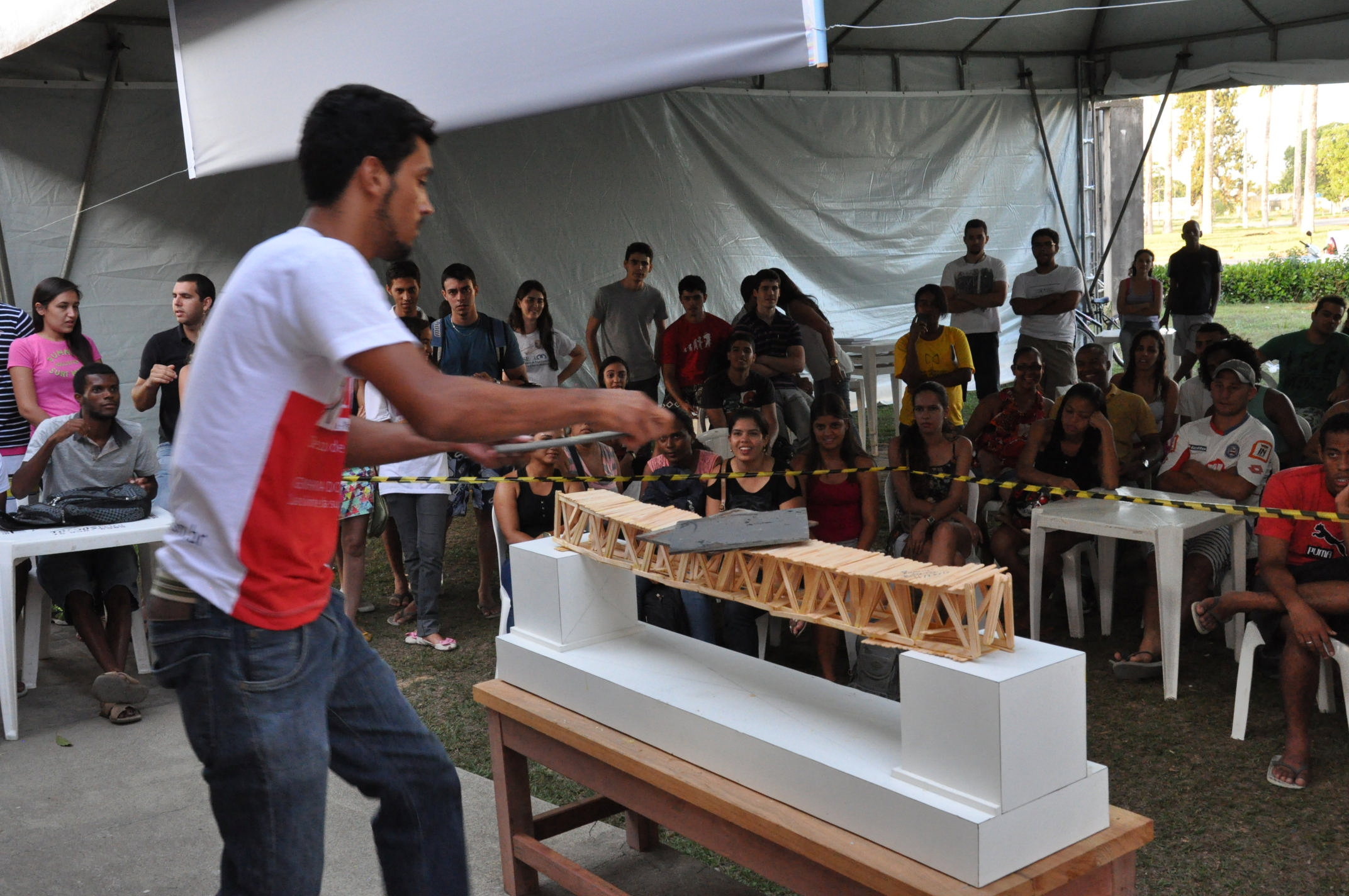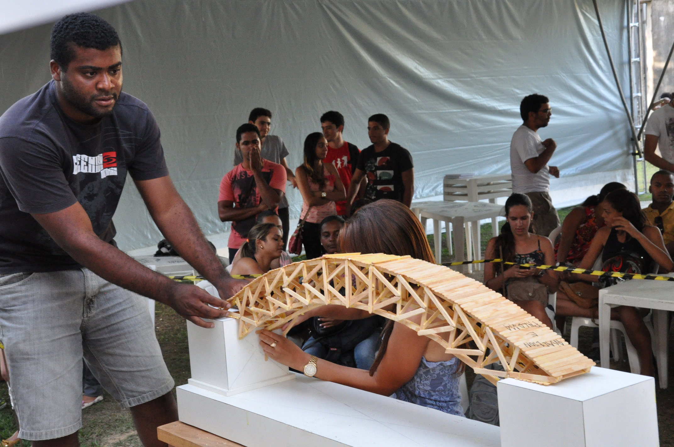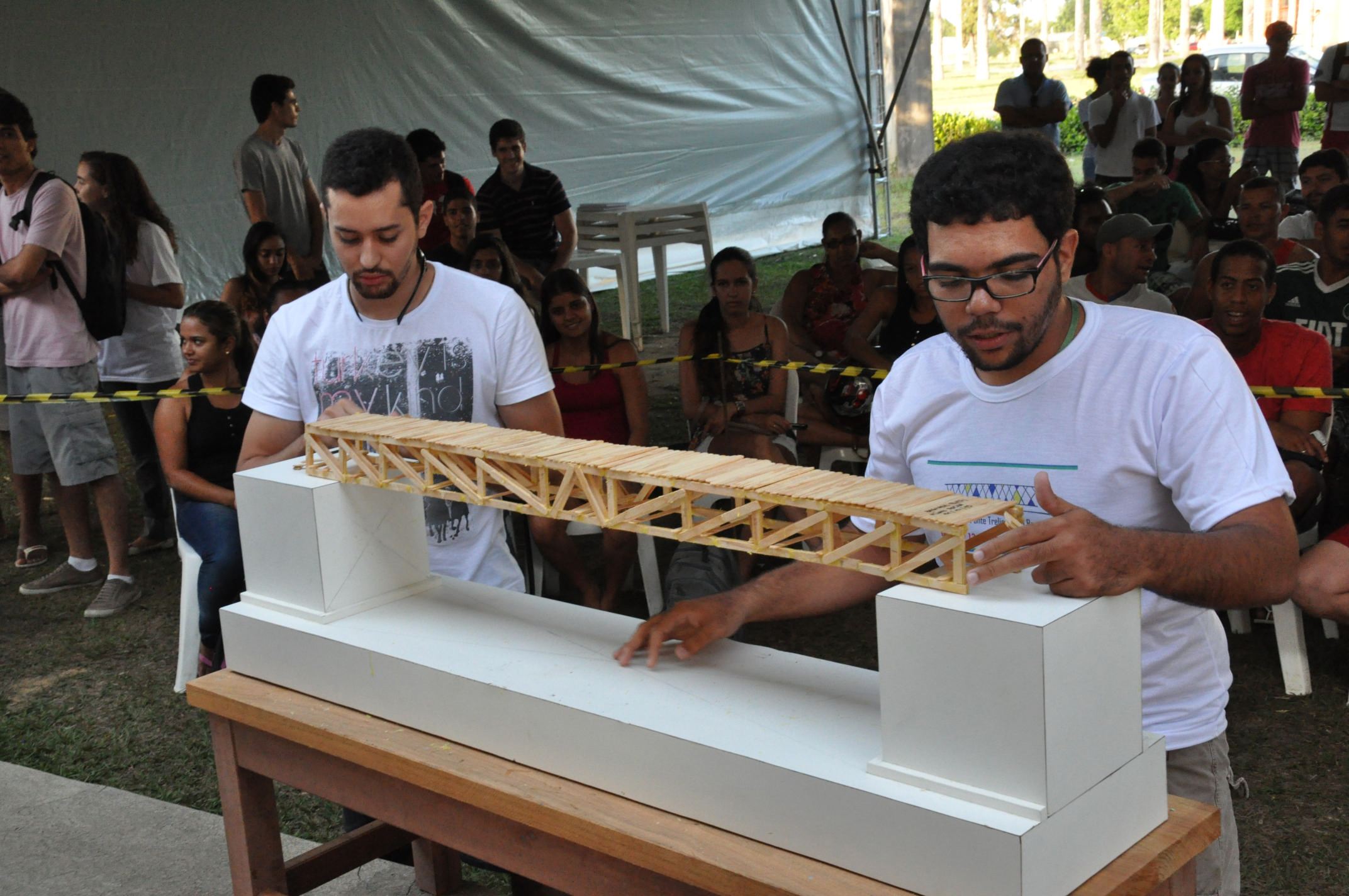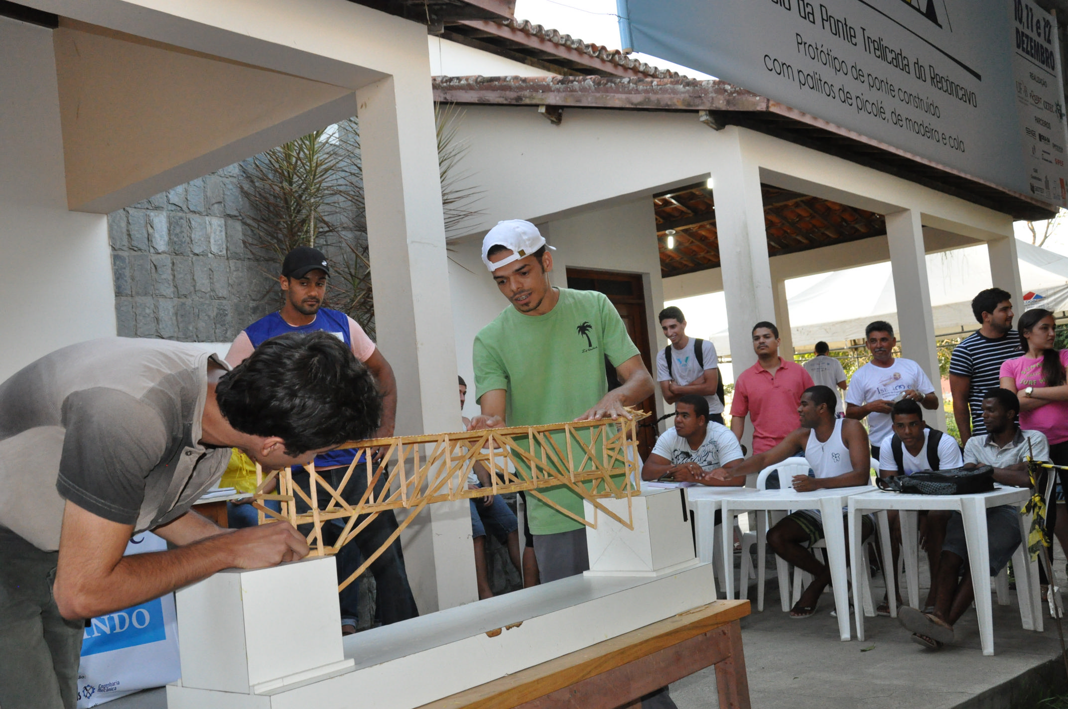 O II Torneio da Ponte Treliçada do Recôncavo foi realizado no campus de Cruz das Almas da Universidade Federal do Recôncavo da Bahia (UFRB), nos dias 10 e 11 de dezembro. Uma iniciativa do Centro de Ciências Exatas e Tecnológicas (CETEC), o evento avalia o protótipo de uma ponte construída com palitos de picolé de madeira e cola. O modelo deve resistir a uma carga crescente para análise do desempenho de sua estrutura.