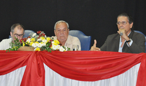 Uma iniciativa da Assessoria Especial para Projetos Estratégicos (ASSEPE), em seu primeiro dia, teve como convidados o professor Manoel Andrade da Universidade de Brasília (UnB), que falou sobre o legado de Chico Mendes, e o diretor executivo do Grupo de Defesa e Promoção Socioambiental (GERMEN), Cláudio Mascarenhas, que abordou a temática “Chico Mendes e as lutas de resistências a um modelo predatório, entreguista e alienígena”. Como mediador, o assessor da ASSEPE, Geraldo Sampaio. O reitor Paulo Gabriel Nacif também fez parte da mesa de abertura do evento.
