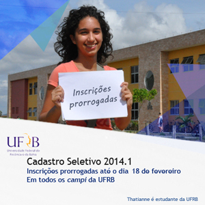 A Universidade Federal do Recôncavo da Bahia (UFRB) prorrogou até o dia 18 de fevereiro as inscrições do Cadastro Seletivo para ocupação das vagas remanescentes do SiSU 2014.1. São 736 vagas em 27 cursos de graduação. Os interessados devem ter seu nome na Lista de Espera no site do SiSU, tendo feita a primeira opção pela UFRB.