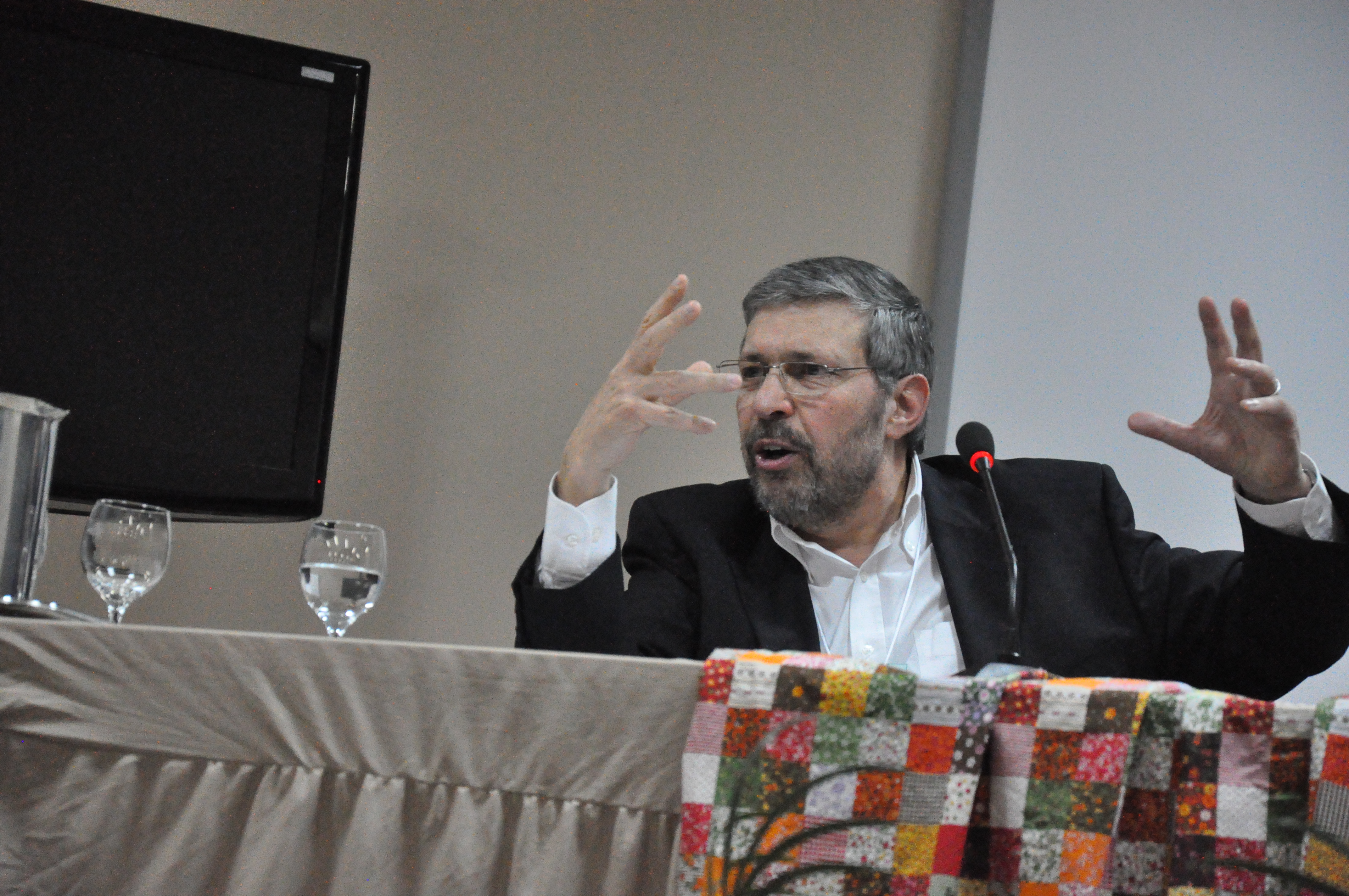 “O campo da avaliação educacional possui duas visões em disputas: de um lado, a concepção como um espaço exclusivo dos profissionais de avaliação, do outro, a avaliação é vista em um sentido sociológico, atravessado por visões variadas, um campo aberto às leituras disciplinares e interdisciplinares”, destacou Afonso durante a palestra. Ele completa que a avaliação não cumpre só funções dos discursos oficiais e públicos, podendo abranger outras funções. Todas as formas de avaliação têm uma razão de ser. “O que eu questiono é se há congruência naquilo que a avaliação pretende atingir e o que ela de fato alcança”, aponta. O professor ainda faz uma crítica a forma como a avaliação de desempenho do professor é vista: “não aborda os aspectos imensuráveis, como se os professores não fossem educadores, socializadores”. O desafio é a interação entre as diferentes formas de avaliação. Ele ainda falou sobre a avaliação como um instrumento de realizações de políticas, definição que se fortaleceu nos governos neoliberais.