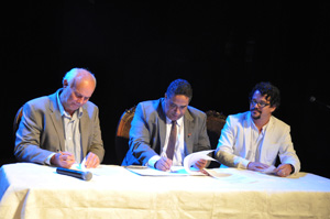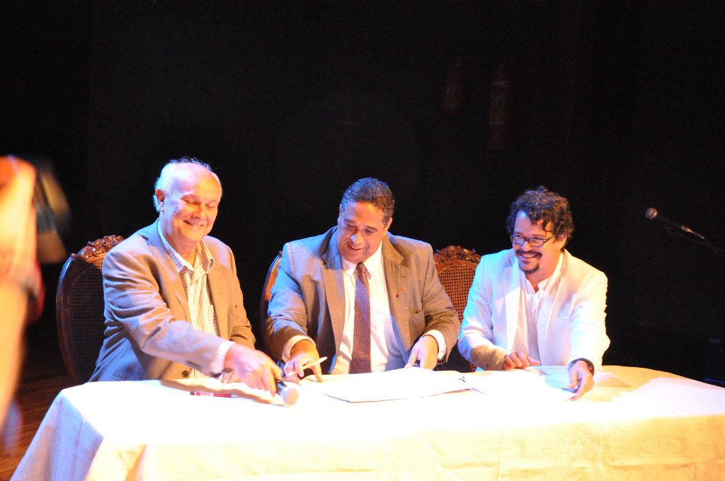 Na ocasião, foi assinado o termo de cooperação entre a UFRB e a Secretaria de Cultura do Estado da Bahia (SECULT). O documento trata de uma série de políticas para a cultura, envolvendo programas e projetos voltados para a formação, conforme elucidou Danillo Barata, diretor do centro. “Esse termo significa que a UFRB, por meio do CECULT, e o Governo do Estado se tornam colaboradores para implantar e desenvolver uma série de políticas para a cultura, envolvendo formação e ações de projetos e programas para da Bahia”, disse Barata.