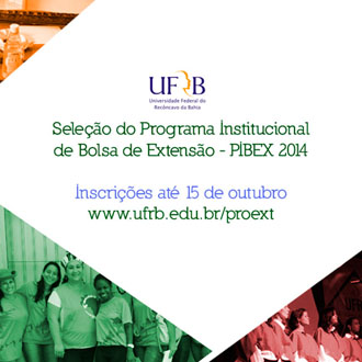 A Pró-Reitoria de Extensão (Proext) da Universidade Federal do Recôncavo da Bahia (UFRB) divulga chamada para seleção de projetos e programas de extensão. O Edital 04 PIBEX 2014 está aberto para submissão de propostas no período de 28 de agosto a 15 de outubro. Somente professor do quadro permanente da UFRB, em efetivo exercício de suas atividades, pode participar.