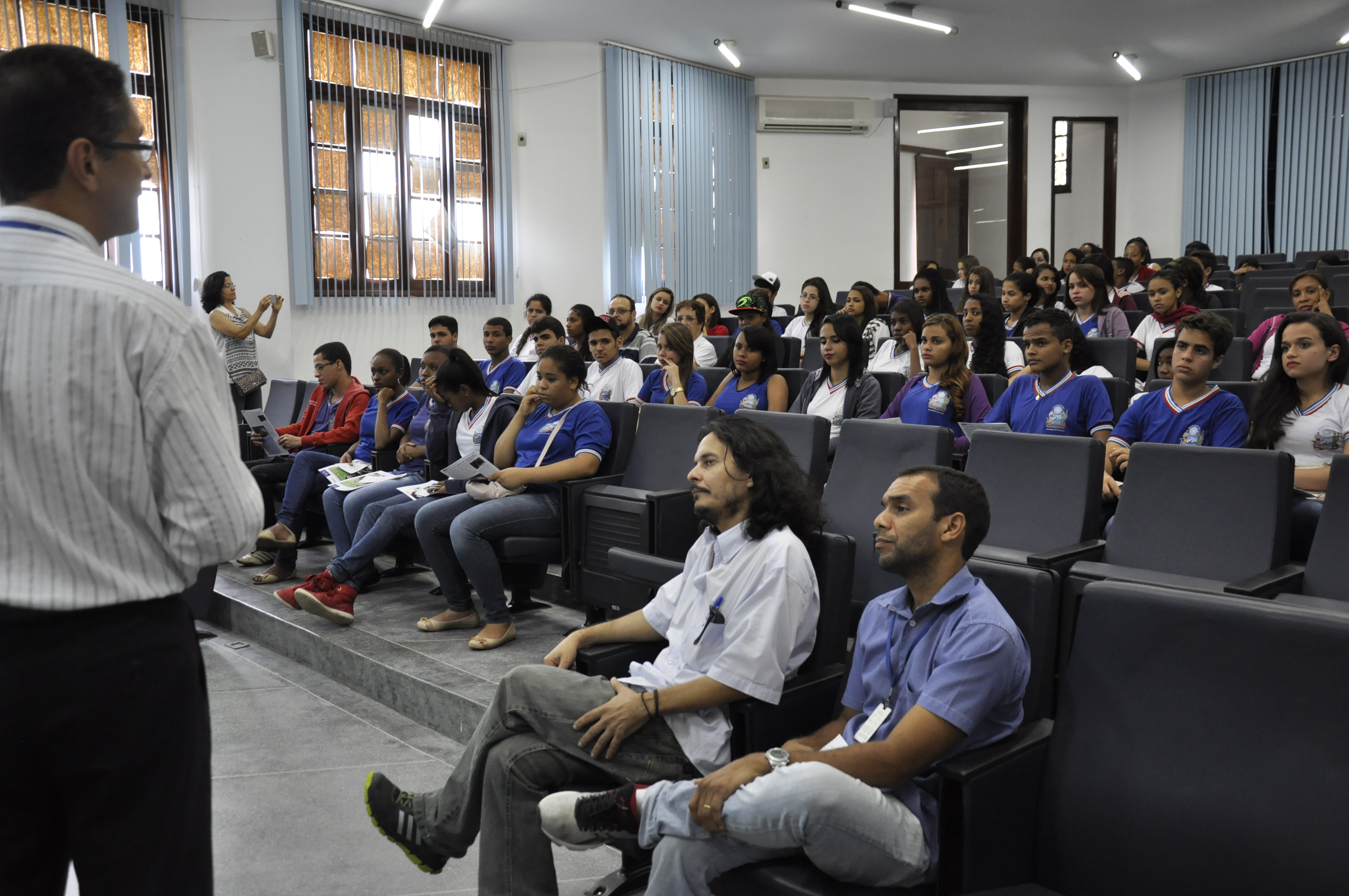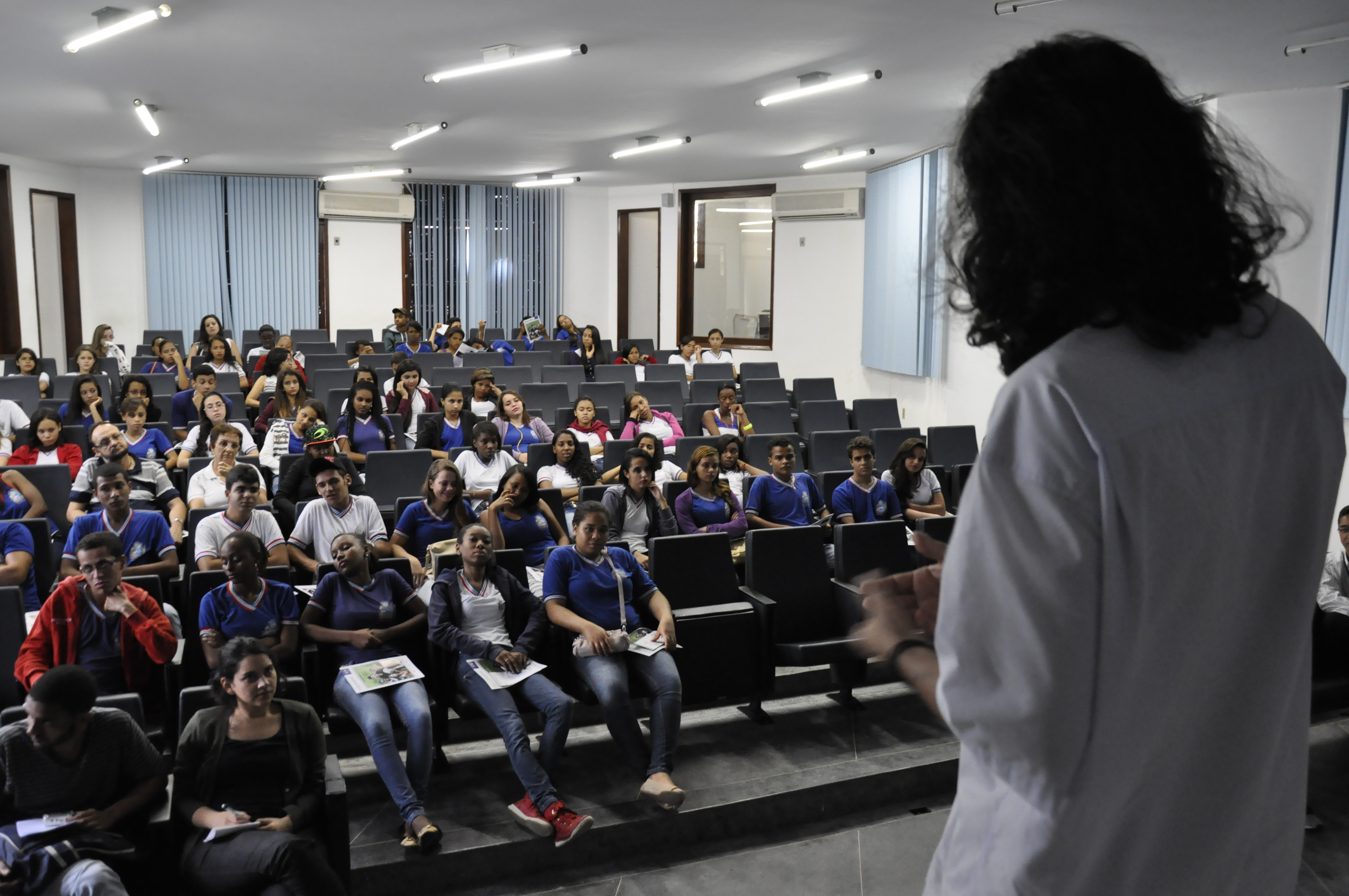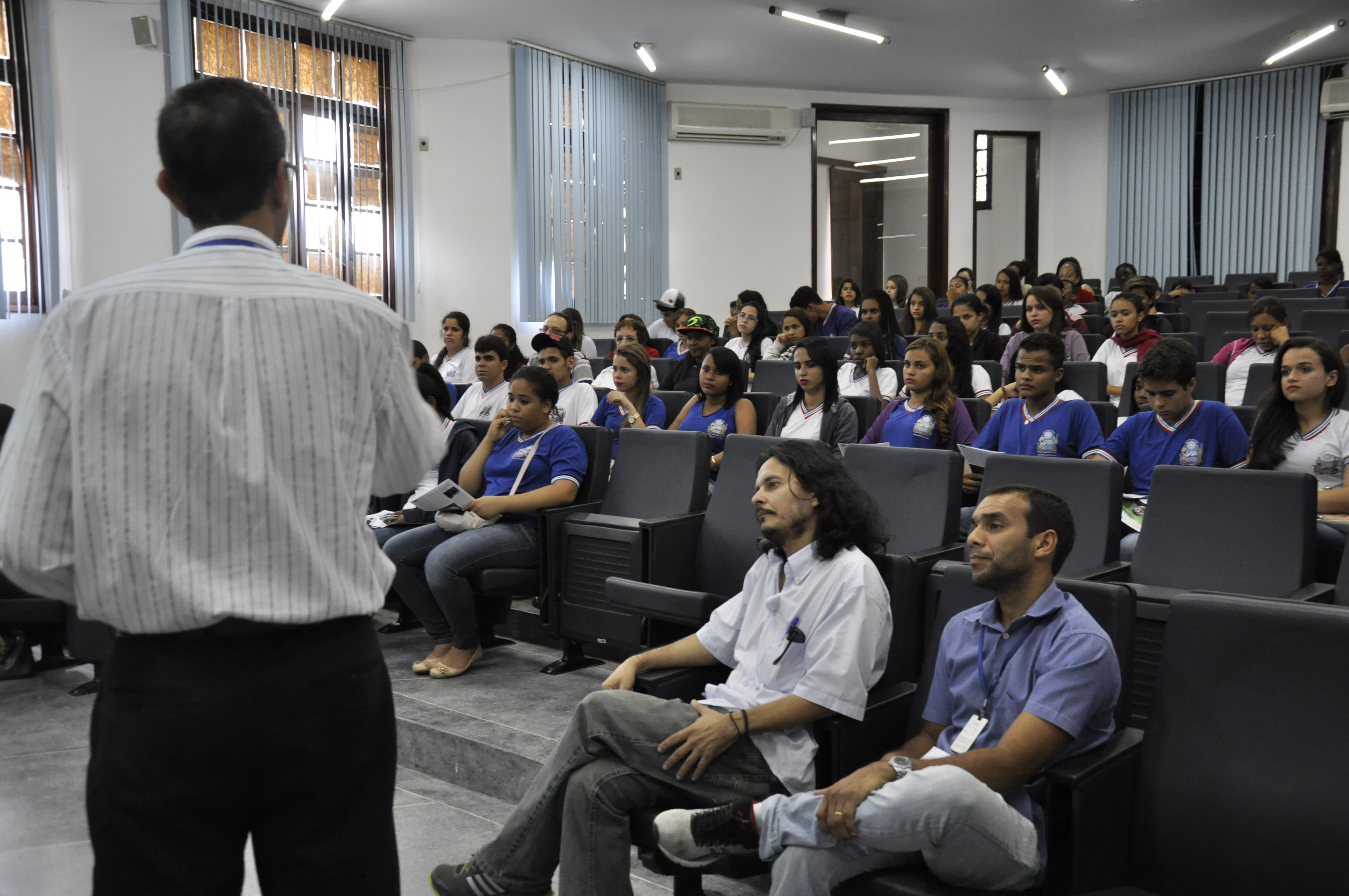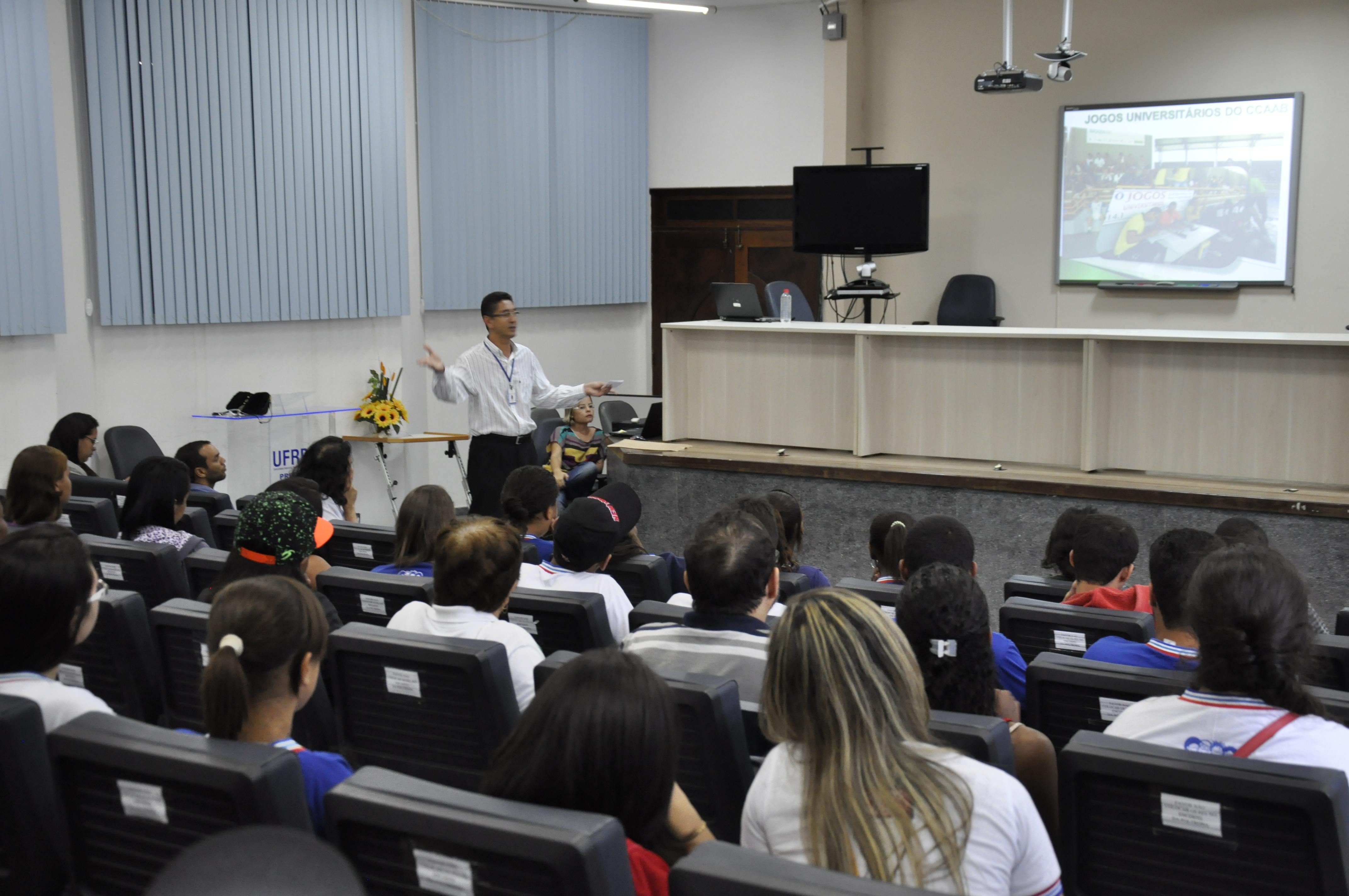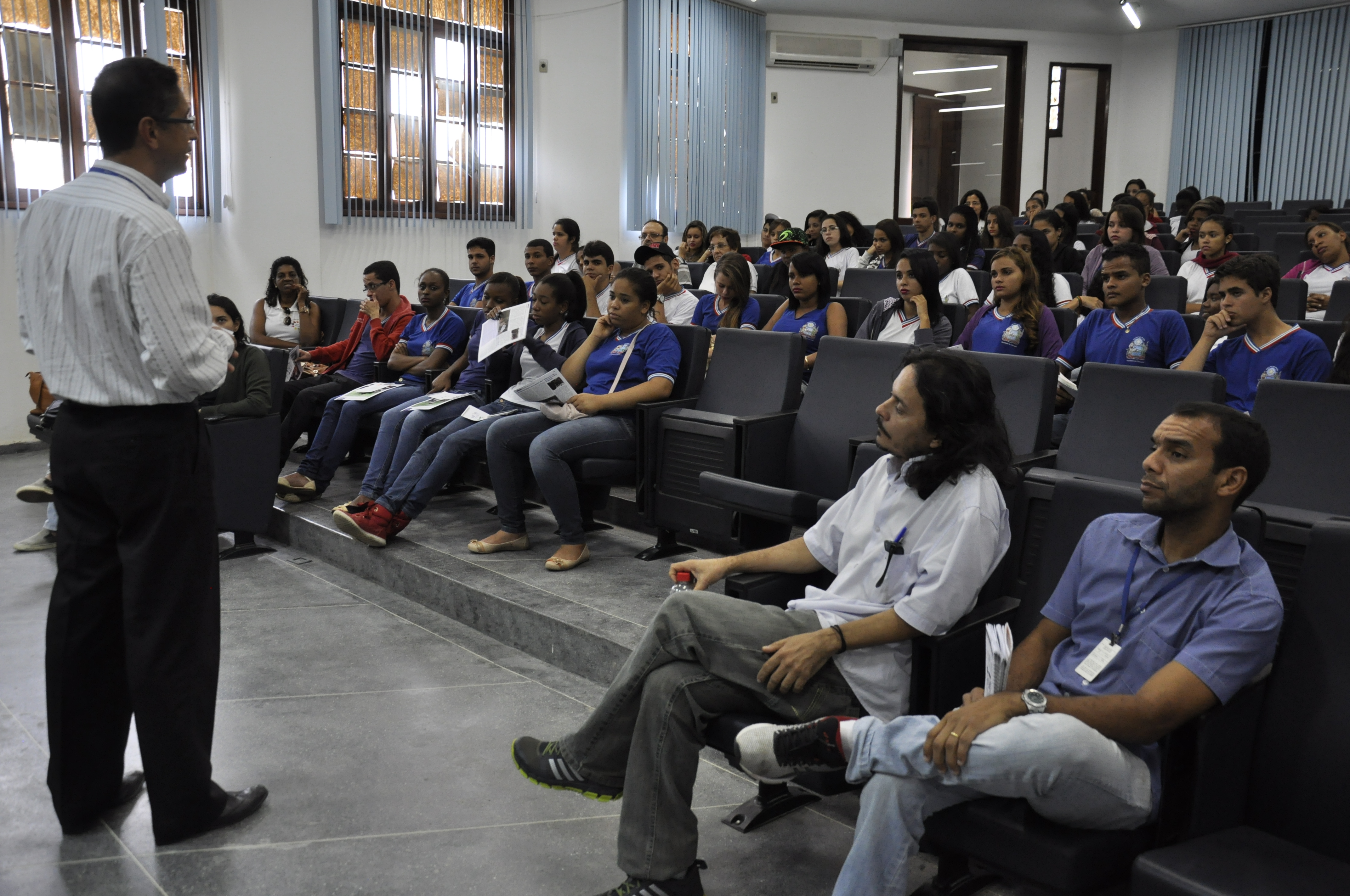 O diretor do CCAAB, Elvis Vieira, recepcionou os estudantes no Auditório da Pró-Reitoria de Pesquisa, Pós-Graduação, Criação e Inovação (PPGCI). O diretor apresentou os cursos de graduação e pós-graduação do centro, além da estrutura técnico-administrativa. “É uma obrigação da nossa instituição estabelecer relação com a comunidade e estar sempre aberta para receber esses jovens que serão nossos futuros alunos ou profissionais”, disse. Segundo ele, o mais importante é despertar nesses jovens a vontade de entrar na universidade e afastar a ideia de que o Ensino Superior é algo distante para eles. “Na verdade, já é amanhã! E eles têm que estar prontos para isso”, afirmou.
