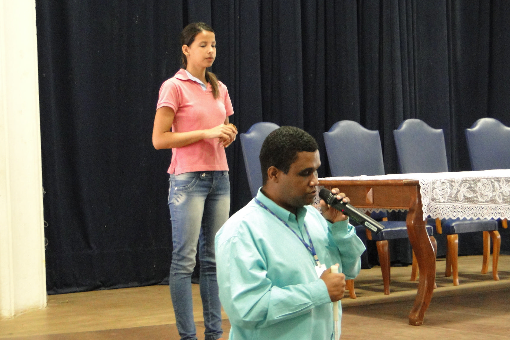 A programação incluiu ainda o relato do estudante do CETEP, José Henrique Souza, e do servidor da UFRB, Edmundo Xavier, ambos com deficiência visual. Henrique contou que sofreu preconceito devido à deficiência visual, mas que atualmente estuda em escola regular, toca teclado e realiza as atividades que gosta normalmente. “Eu acredito que nós somos eficientes e temos capacidade para realizar qualquer atividade com destaque”, afirmou. Finalizando o rol de relatos, o servidor Edmundo citou sua vida como exemplo de sucesso, uma vez que possui deficiência visual há 19 anos.