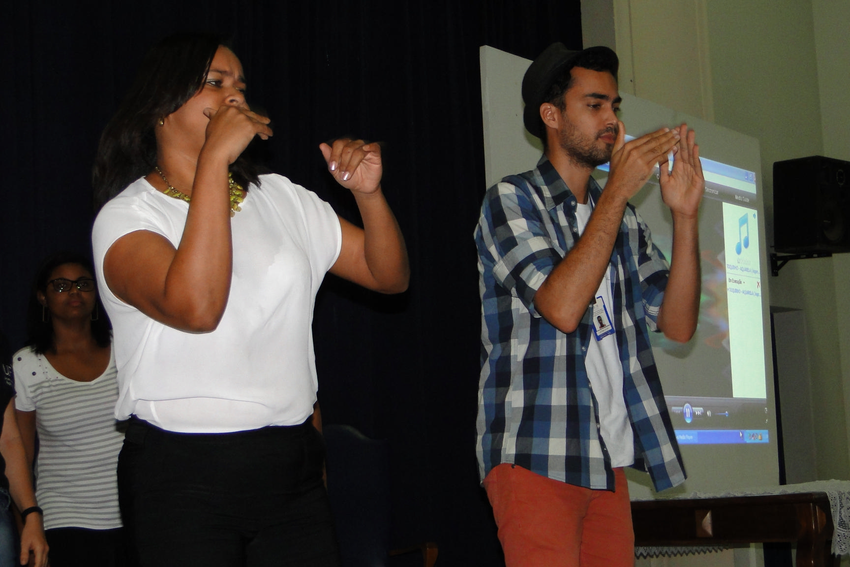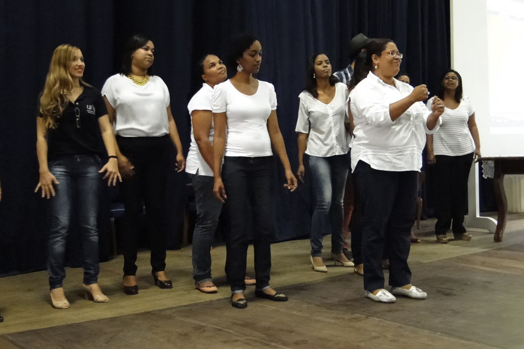 No encerramento, um grupo formado pelos servidores técnicos administrativos da UFRB participantes do curso da Língua Brasileira de Sinais (LIBRAS) fizeram uma apresentação da música Aquarela, de Toquinho, em LIBRAS.