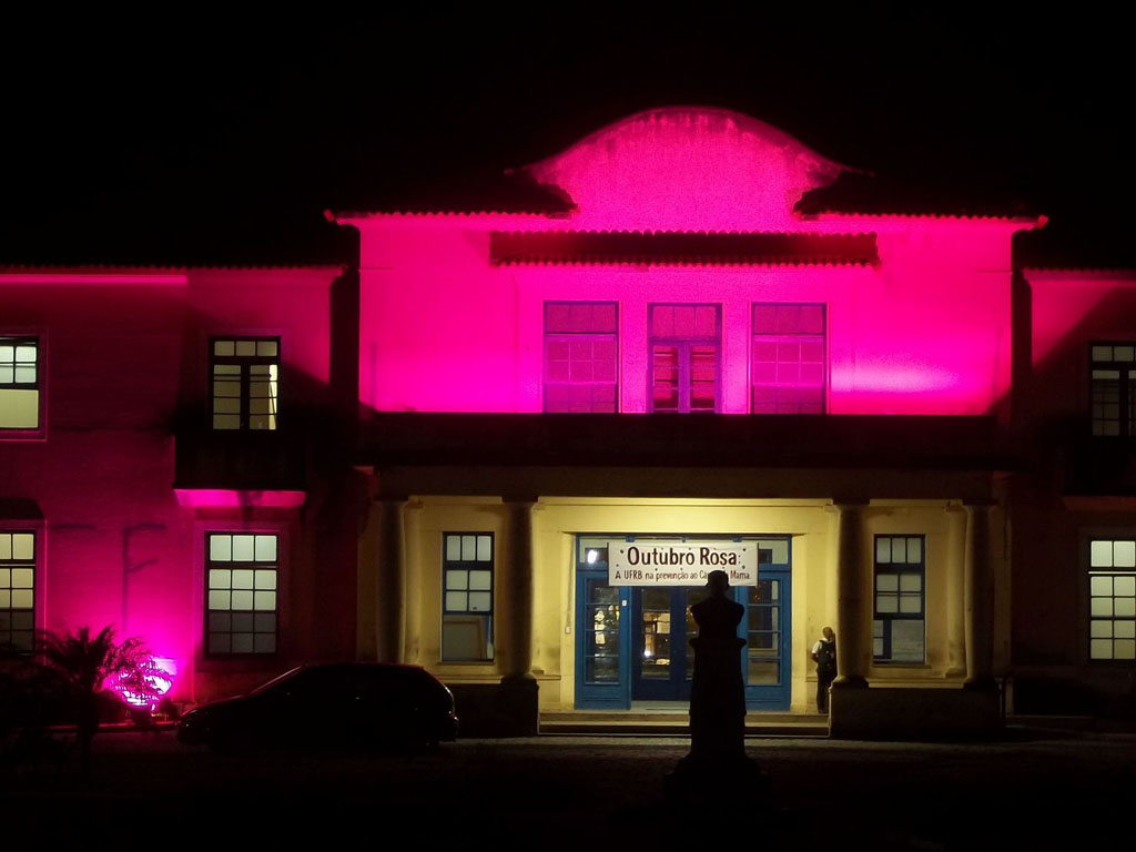 A Universidade Federal do Recôncavo da Bahia (UFRB) realiza durante o mês de outubro, como parte da campanha “Outubro Rosa”, ações voltadas à conscientização sobre a importância da prevenção do câncer de mama. Durante todo o mês, alguns espaços nos campi da Universidade serão iluminados com a cor rosa, símbolo da campanha. E neste dia 1º, o portal da UFRB também muda a cor do layout para ressaltar a importância deste movimento.