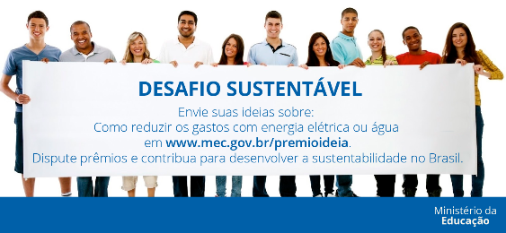 O Ministério da Educação (MEC), por meio da Subsecretaria de Planejamento e Orçamento (SPO), divulga o projeto interinstitucional Desafio da Sustentabilidade. A iniciativa faz parte do Prêmio Ideia, que este ano concentra-se no uso racional dos recursos públicos e o estabelecimento de uma consciência coletiva socioambiental. O desafio é uma consulta pública na qual os participantes podem propor e avaliar soluções pró-ecológicas inovadoras em duas categorias: