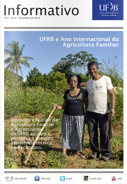 A 4ª edição do Informativo da Universidade Federal do Recôncavo da Bahia (UFRB) encontra-se disponível online. A publicação traz como tema, neste que a Organização das Nações Unidas (ONU) escolheu como o Ano Internacional da Agricultura Familiar, a participação da UFRB através de projetos de pesquisa e apoio técnico na agricultura familiar do Recôncavo.