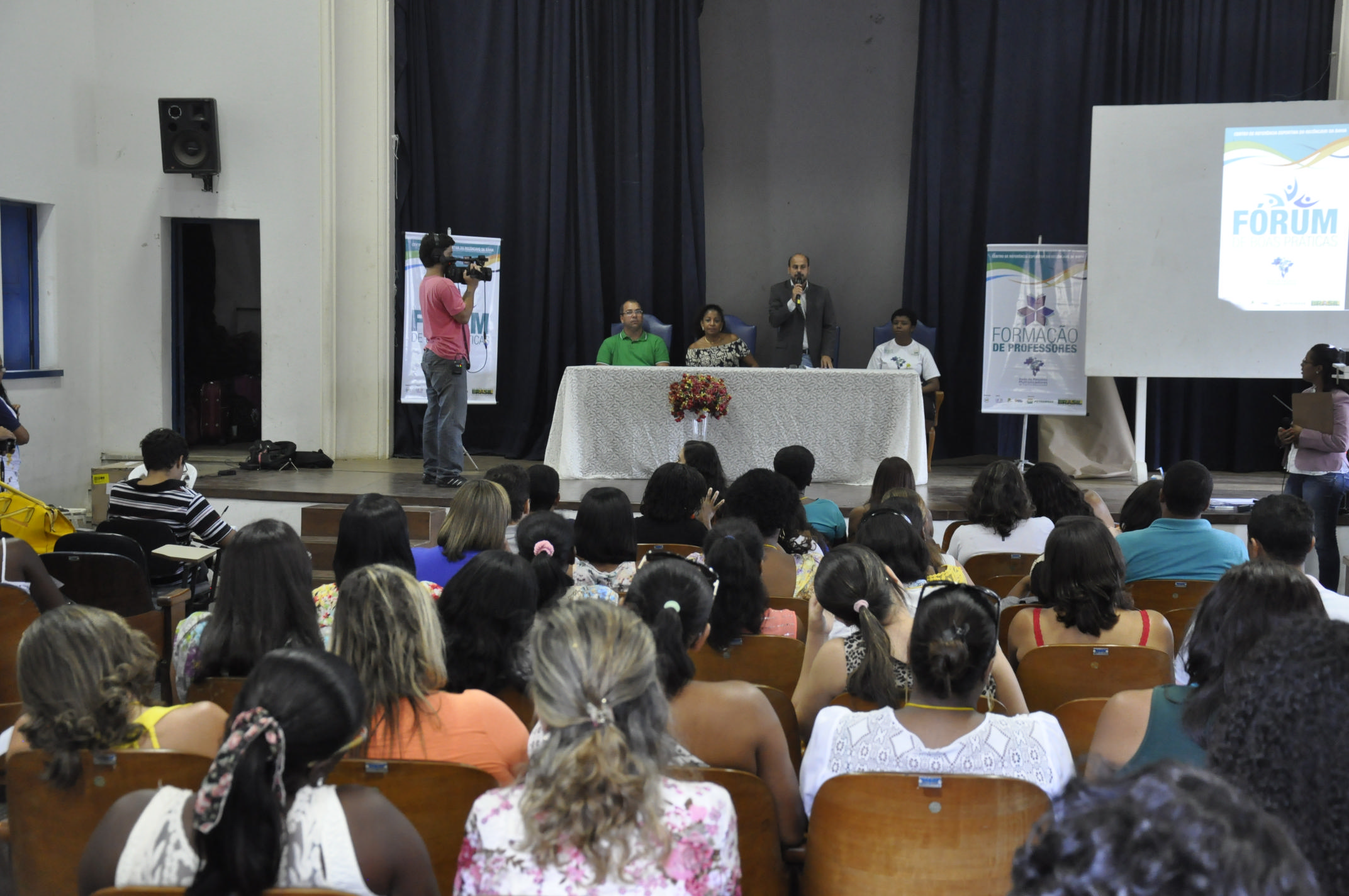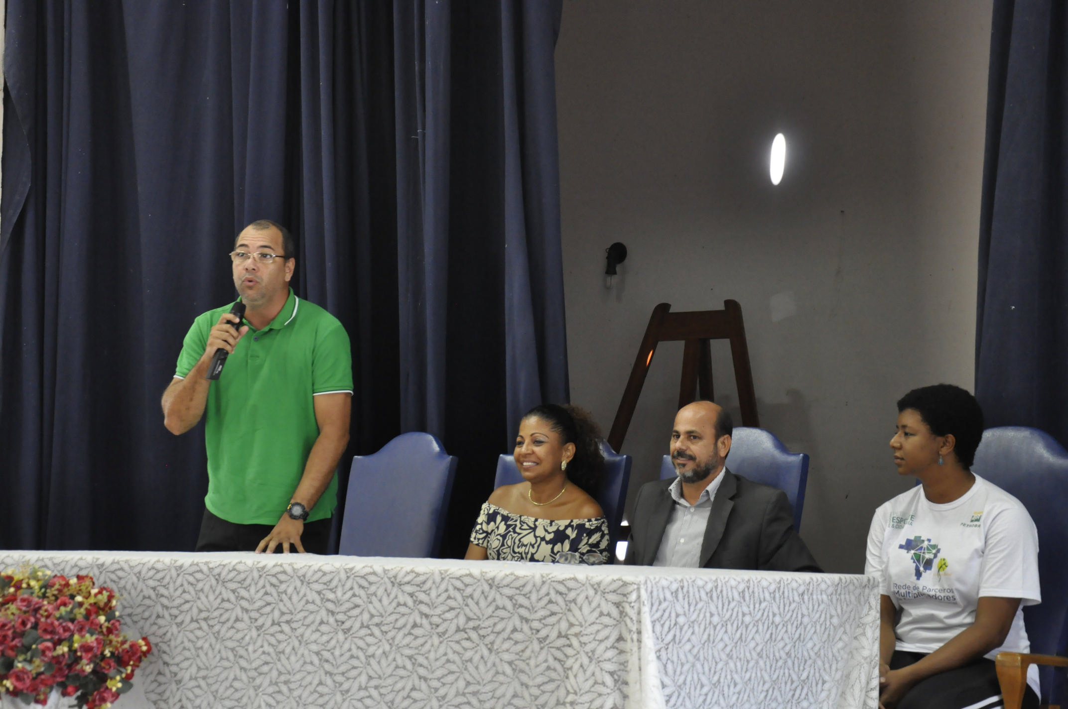 “O projeto reúne 13 municípios do recôncavo e cria uma rede extremamente importante para pensar e executar políticas públicas de educação e de formação de professores, desenvolvendo metodologias e aspectos pedagógicos que dêem conta de uma dimensão maior que não é só a aprendizagem tradicional. Isso é fazer educação de forma qualificada e diferenciada”, destacou o vice-reitor Silvio Soglia, presente na mesa de abertura do evento. Ao seu lado, o professor Jean Barros, do Núcleo de Pesquisa GUETO, a professora Rita Dias, coordenadora geral do projeto da Rede de Multiplicadores na UFRB, e Cibele Venâncio, representante do Instituto Esporte Educação (IEE).