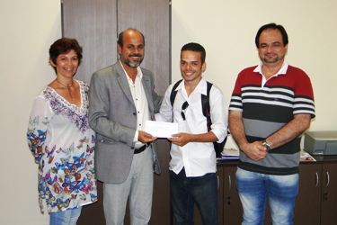 O Centro de Ciências Exatas e Tecnológicas (CETEC) da Universidade Federal do Recôncavo da Bahia (UFRB) realizou a entrega do prêmio ao vencedor do concurso da logomarca do Centro de Ensino, na última sexta-feira, 15 de março. Para entrega do prêmio, o vice-reitor Silvio Soglia, o diretor do CETEC Denis Petrucci e a professora Luciana Boeira do CETEC, que é mestre em Desenho, Cultura e Interatividade. O estudante do Bacharelado em Ciências Exatas e Tecnológicas (BCET), Matheus de Oliveira Souza, obteve o primeiro lugar e, além de 10 livros publicados pela Editora da UFRB, recebeu o valor de R$ 600.
