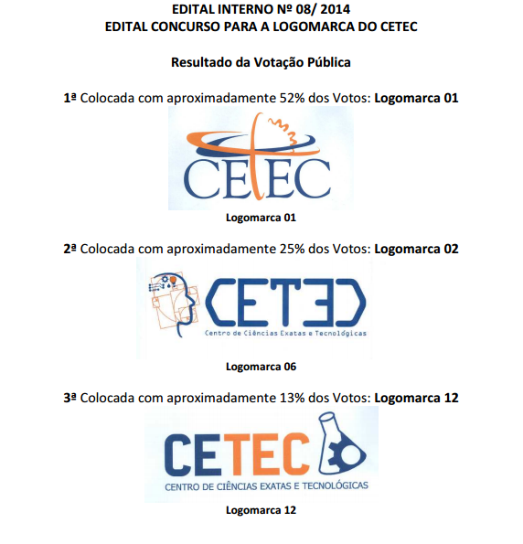 Confira abaixo o resultado da votação pública para logomarca do CETEC: