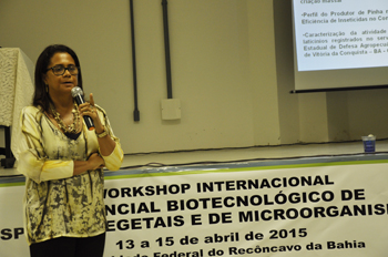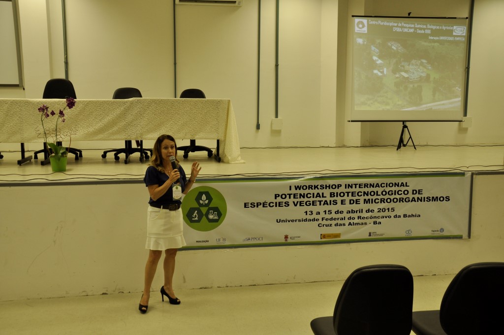 A pró-reitora iniciou a programação dando as boas-vindas aos participantes e agradeceu a todos os parceiros que contribuíram com a organização do Workshop, entre eles a Universidade Estadual de Feira de Santana (UEFS) e o Centro Pluridisciplinar de Pesquisas Químicas, Biológicas e Agrícolas (CPQBA) da Universidade Estadual de Campinas (Unicamp).