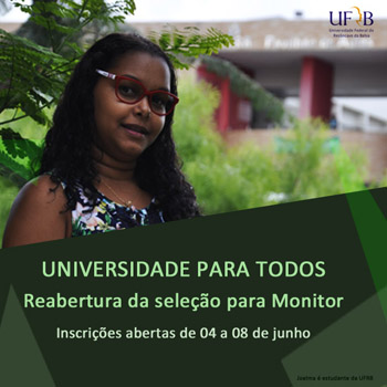 A nova seleção é voltada para Monitores das disciplinas de Língua Portuguesa, Literatura, Redação, Língua Estrangeira (Espanhol), Matemática, Física, Química, Biologia, História e Geografia. O público-alvo são graduandos (licenciatura e bacharelado) da UFRB e professores da rede municipal e/ou estadual. As inscrições estarão abertas no período de