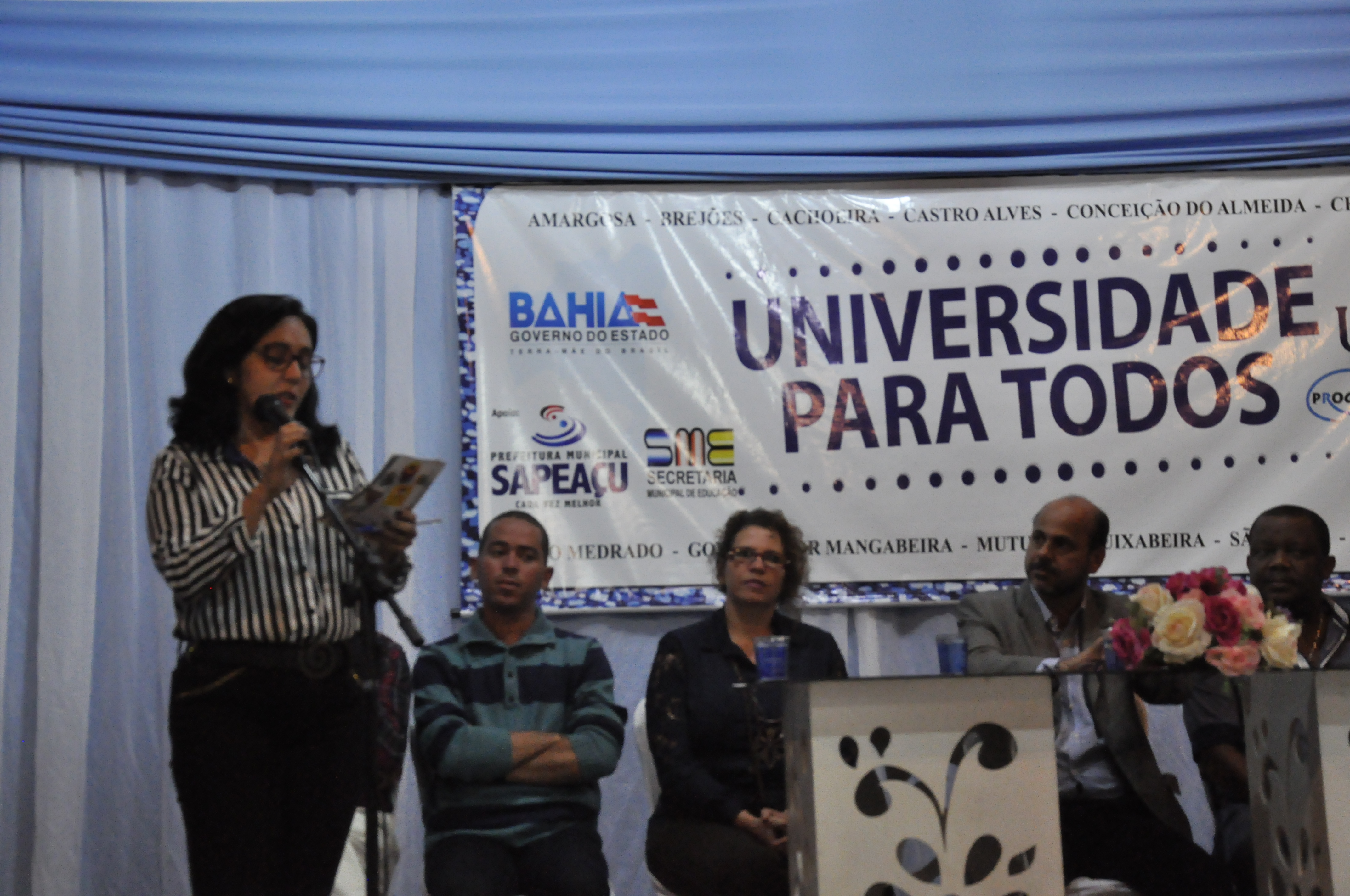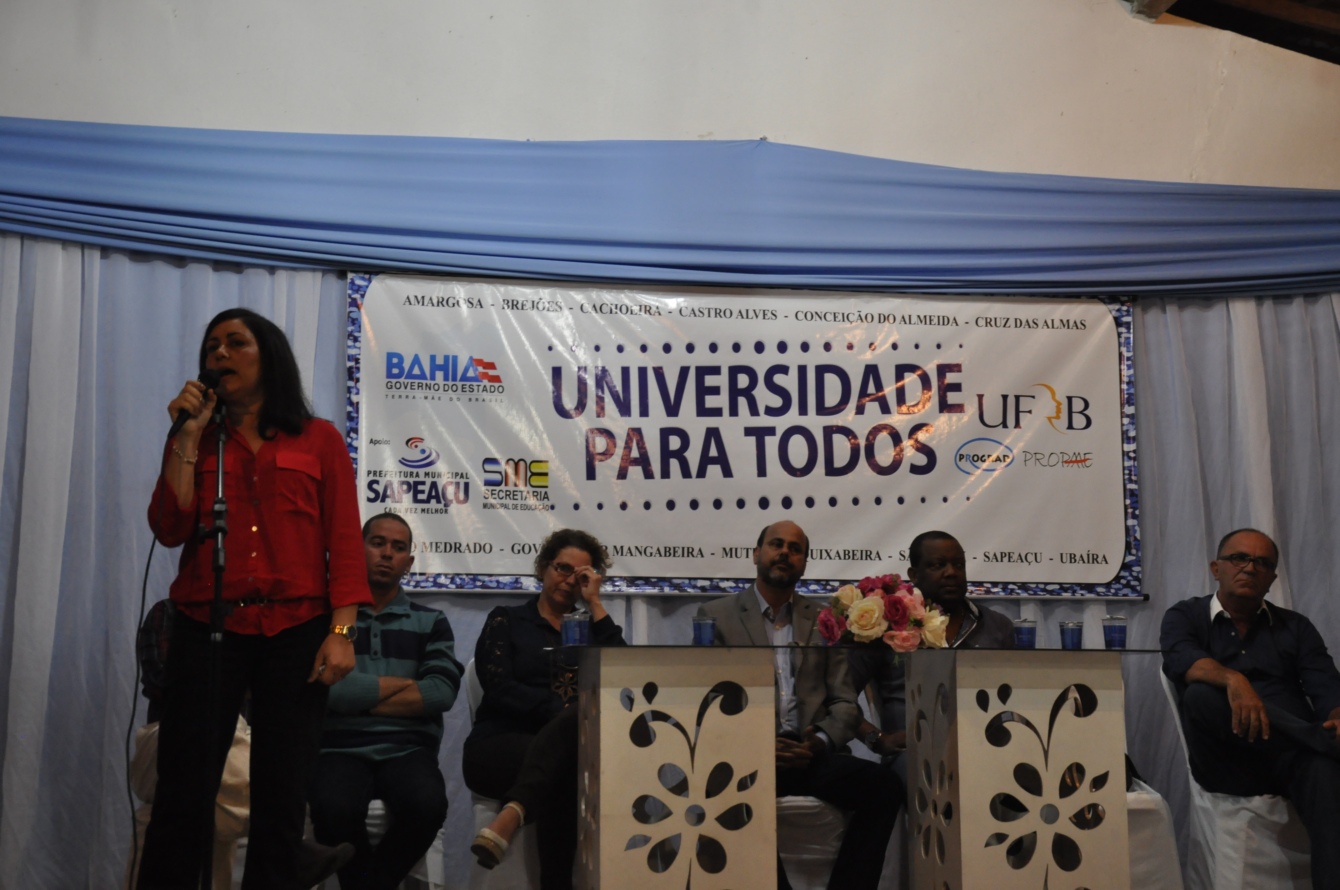 A Universidade Federal do Recôncavo da Bahia (UFRB) realizou na última segunda-feira, dia 06, no município de Sapeaçu, a aula inaugural da edição 2015 do programa Universidade Para Todos (UPT). O evento, realizado no Colégio Municipal de Sapeaçu, contou com a participação de representantes da UFRB, da Prefeitura e de monitores e cursistas do programa.